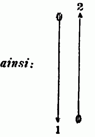 Cette manière a le désavantage, quand le chef tourne le dos à l'orchestre, ainsi qu'il arrive dans les théâtres, de ne permettre qu'à un très petit nombre de musiciens d'apercevoir l'indication si importante du second temps, le corps du chef cachant alors le mouvement de son bras. L'autre procédé est meilleur, puisque le chef déploie son bras en dehors, en l'éloignant de sa poitrine, et que son bâton, s'il a soin de l'élever un peu au-dessus du niveau de son épaule, reste parfaitement visible à tous les yeux.