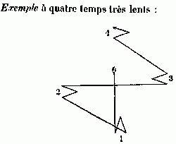 troisième temps (second temps fort), et un quatrième, oblique de bas en
