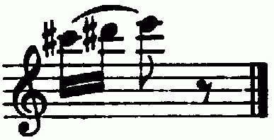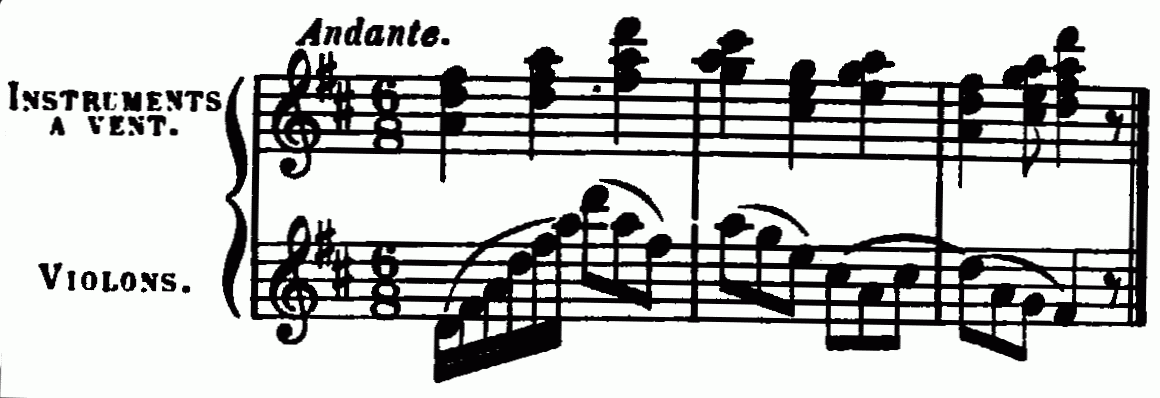 Effet d'autant plus mauvais que l'accent final, frappé au commencement de la troisième mesure par le reste de l'orchestre, arrive un tiers de temps trop tard dans les trompettes et détruit l'ensemble de l'attaque du dernier accord.