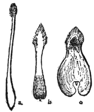 The abdomen is composed of eight or nine distinct rings or segments, most of which have two spiracles or breathing pores, one on each side. It also bears upon the end of the [Pg 5] body the ovipositor of the female or the clasping organs of the male.