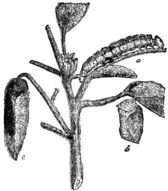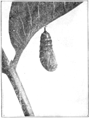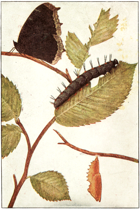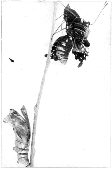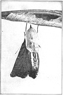 At any rate, the caterpillar changes to a chrysalis, and late in spring it changes again to an adult butterfly that flits about on dusky wing for a few weeks before it dies.