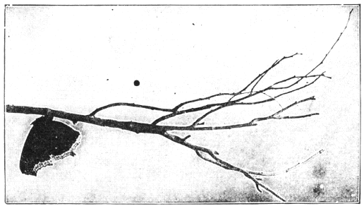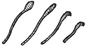 The little pocket that I have thus described is situated upon the seventh segment of the abdomen. Just back of it there are two other openings which are even more curious in their structure. These are provided with some slender tentacles on which there are circles of hairy spurs. These structures are a great puzzle to naturalists. It is difficult to explain what they are for unless we assume that they relate in some way to the honey-dew pocket on the seventh ring. The only plausible explanation is that these serve to advertise to the ants, by giving off a distinctive odor, that there is nectar near at hand to be had for the asking. They would thus be analogous in a way to the fragrant scent of flowers which is for the purpose of advertising to the bee the fact that nectar or pollen or both are near at hand and may be had for the asking. In the case of these caterpillars, however, if this is the true explanation it is a most wonderful provision and one which would be likely to tax the ingenuity of man's mind for a long while before it was originated.