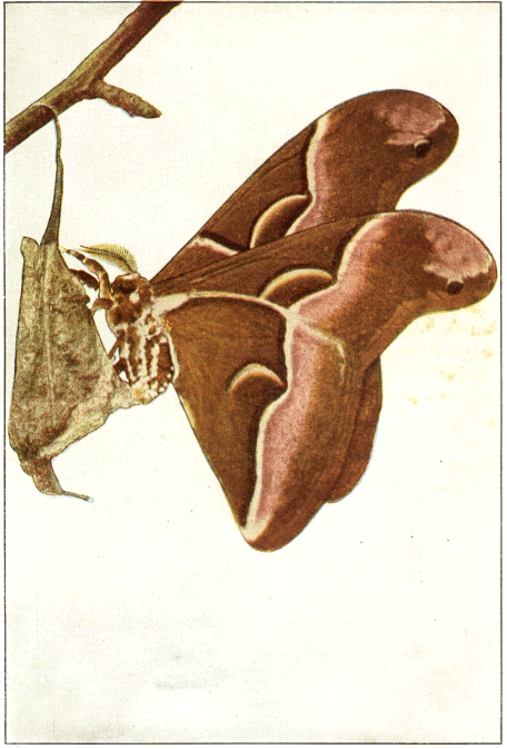 These adults lay eggs upon the leaves of Spanish needle or yucca. The eggs soon hatch into little caterpillars which at first roll parts of the leaves into cylinders, fastening [Pg 268] the sides in place by silken threads, and later burrow into the stem and root, often making a tunnel a foot or more deep. Here the caterpillars remain until full grown. They are then nearly four inches long and half an inch in diameter. They now pupate in the top of their tunnel and in due season emerge as adults.