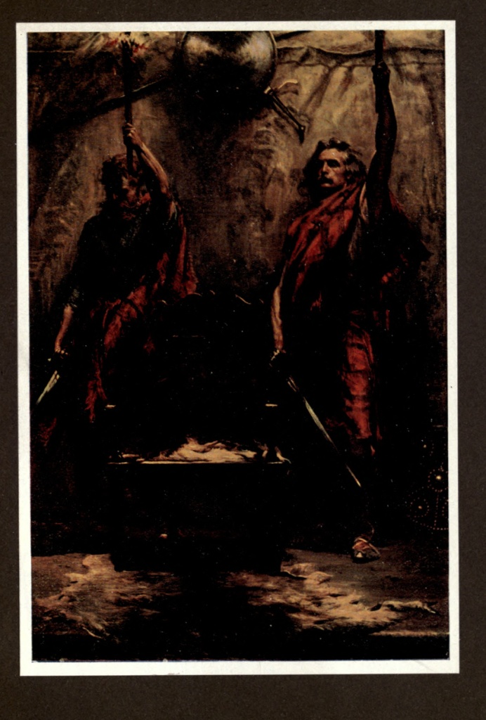 "The two English strangers, therefore, were ushered into the hall, where an unexpected display awaited them. Behind every seat stood a gigantic Highlander, holding in his right hand his drawn sword, and in the left a blazing torch.... 'Lost, lost,' said Musgrave gaily—'my own silver candlesticks are all melted and riding on horseback by this time, and I wish the fellows that enlisted were half as trusty as these.'"