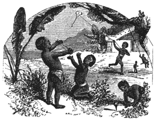 The next morning I said good-bye to the woman, who was determined to stop here, and promised to send her help to prepare her garden and fence, and bring her a few trifles for her comfort. I got home at an early hour, and rode in the evening to Lasar's to tell him what had happened. The old gentleman at once declared that he would send John off the next morning with the requisite number of slaves to arrange everything for the widow, and all the members of the family vied with each other in displaying their sympathy by sending articles of clothing and stores of every description. In a week everything was in order at White's—the garden was laid out, and a field of five acres prepared for planting with maize, beans, gourds, and potatoes. The best varieties of vegetables were sown in the garden, and seeds of all sorts given to the widow. The woman had for the present only to keep the garden in order, while the sons procured game, which they could shoot at times from their own door, for all her other wants were amply supplied. Thus peace and contentment soon returned to this house, and the love of her children restored Mrs. White the activity and determination which the loss of her husband had palsied. Dawn found her busy with domestic duties—cleaning the rooms, dressing her daughters, milking the cows, preparing breakfast, salting and drying game, in short, with all sorts of occupations; after that she was seen sitting in the shadow of the roof between the houses, cleansing and spinning cotton to make clothes for her children, while the two little girls sported around her, and the sons were busy in the garden or hunting close at hand. She could recall them at any moment by sounding an immense cow-horn which hung in the passage between the two houses, near the door of the keeping-room.