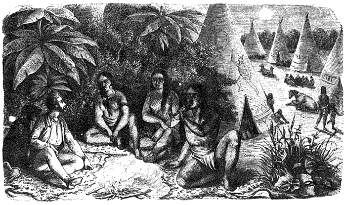 In a very short time all became quiet again in camp, as if nothing extraordinary had happened; and after I had sat for a while with the chief, I wished him good-night, and was accompanied home by Cachakia, which attention appears to be one of the forms of politeness on the part of the savages; and even though the home of a parting guest is a long way from their camp, they always accompany him to the last highest point, whence they can look back on their camp.
