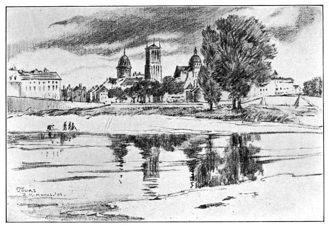 So more note-books were bought, and, following the genial Mark Twain's advice, another fountain pen and more crayons and sketch-books, and the author and artist set out in the beginning of a warm September to fill those gaps and to reduce, if possible, that series of rambles along the now flat and now rolling banks of the broad blue Loire to something like consecutiveness and uniformity; with what result the reader may judge.