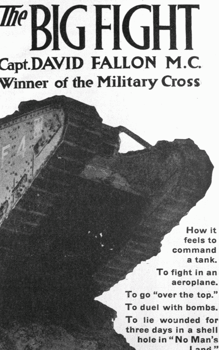 Few soldiers in this great war have been through adventures more thrilling, dramatic and perilous than fell to the lot of Captain David Fallon.
