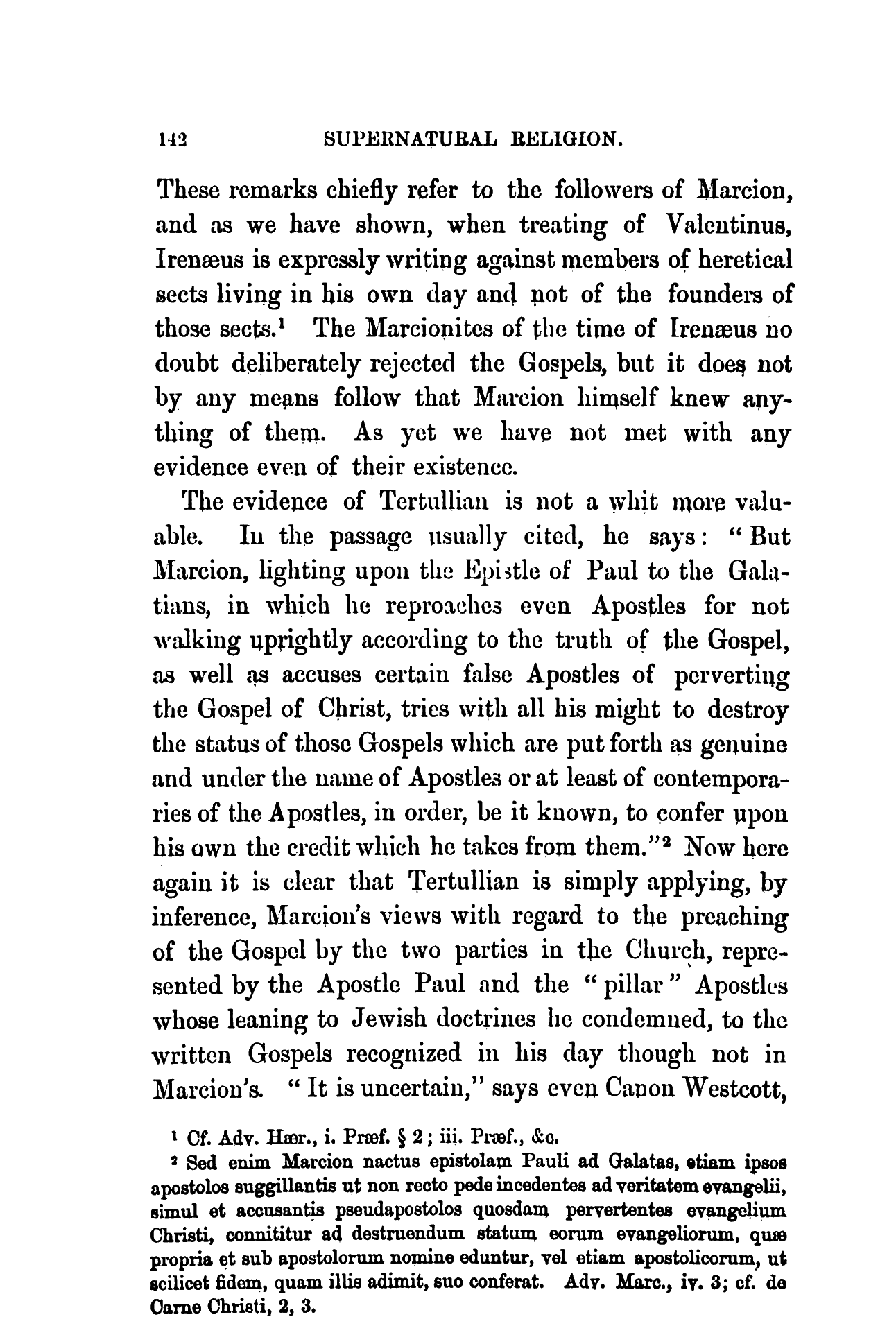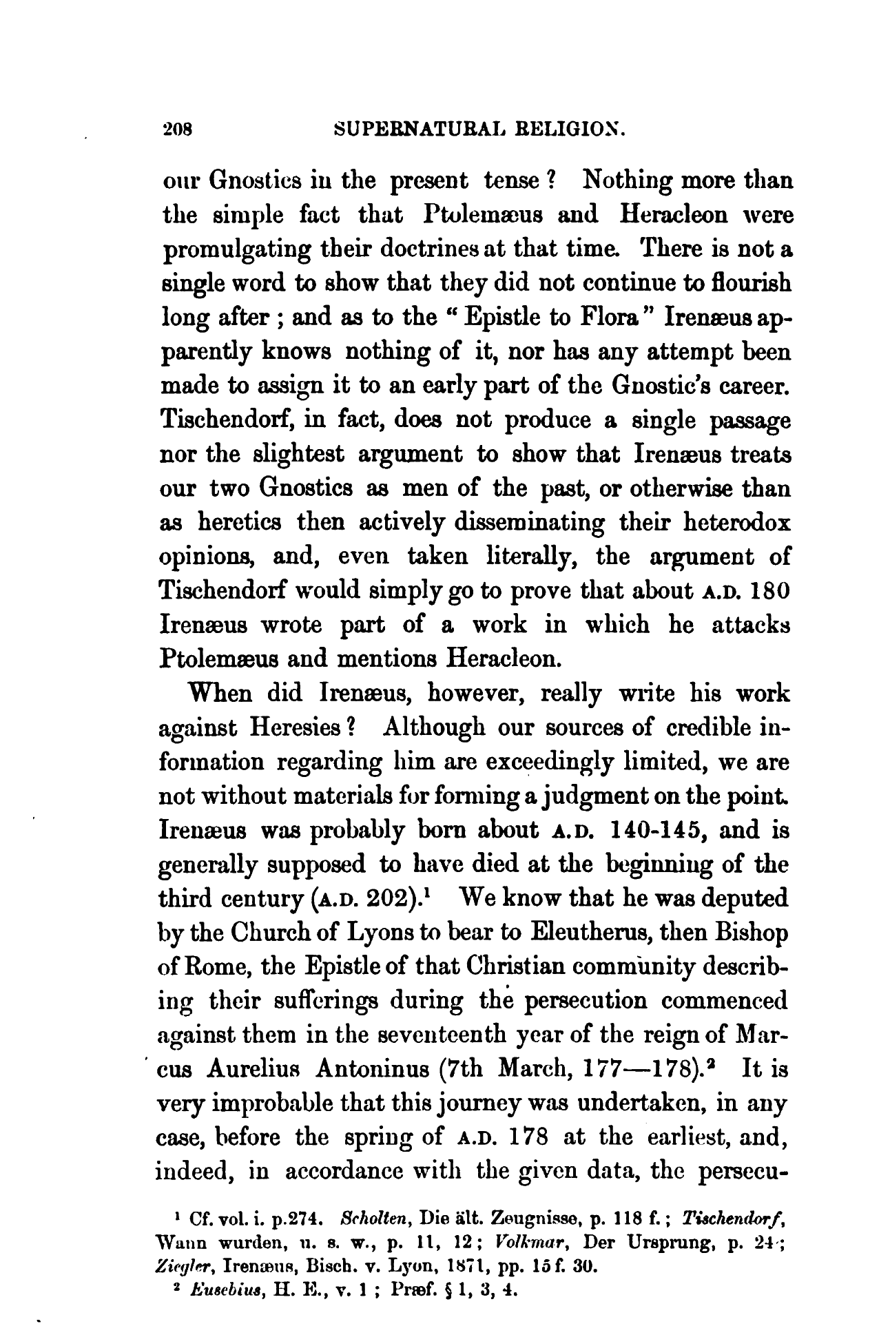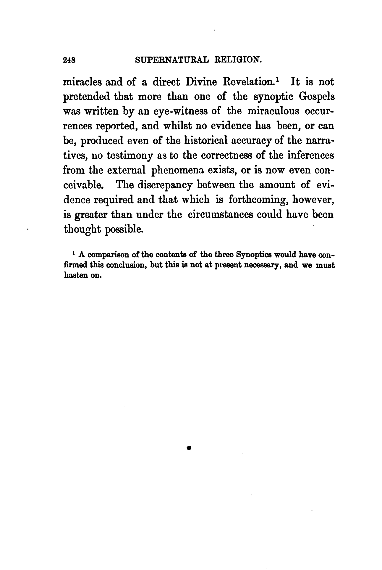 over the formation of the Canon, it is not singular that so many of the decisions of the Fathers have been reversed. Irenæus himself mentioned the existence of heretics who rejected the fourth Gospel,(1) and Epiphanius(2) refers to the Alogi, who equally denied its authenticity, but it is not needful for us further to discuss this point. Enough has been said to show that the testimony of the fourth Gospel is of no value towards establishing the truth of miracles and the reality of Divine Revelation.