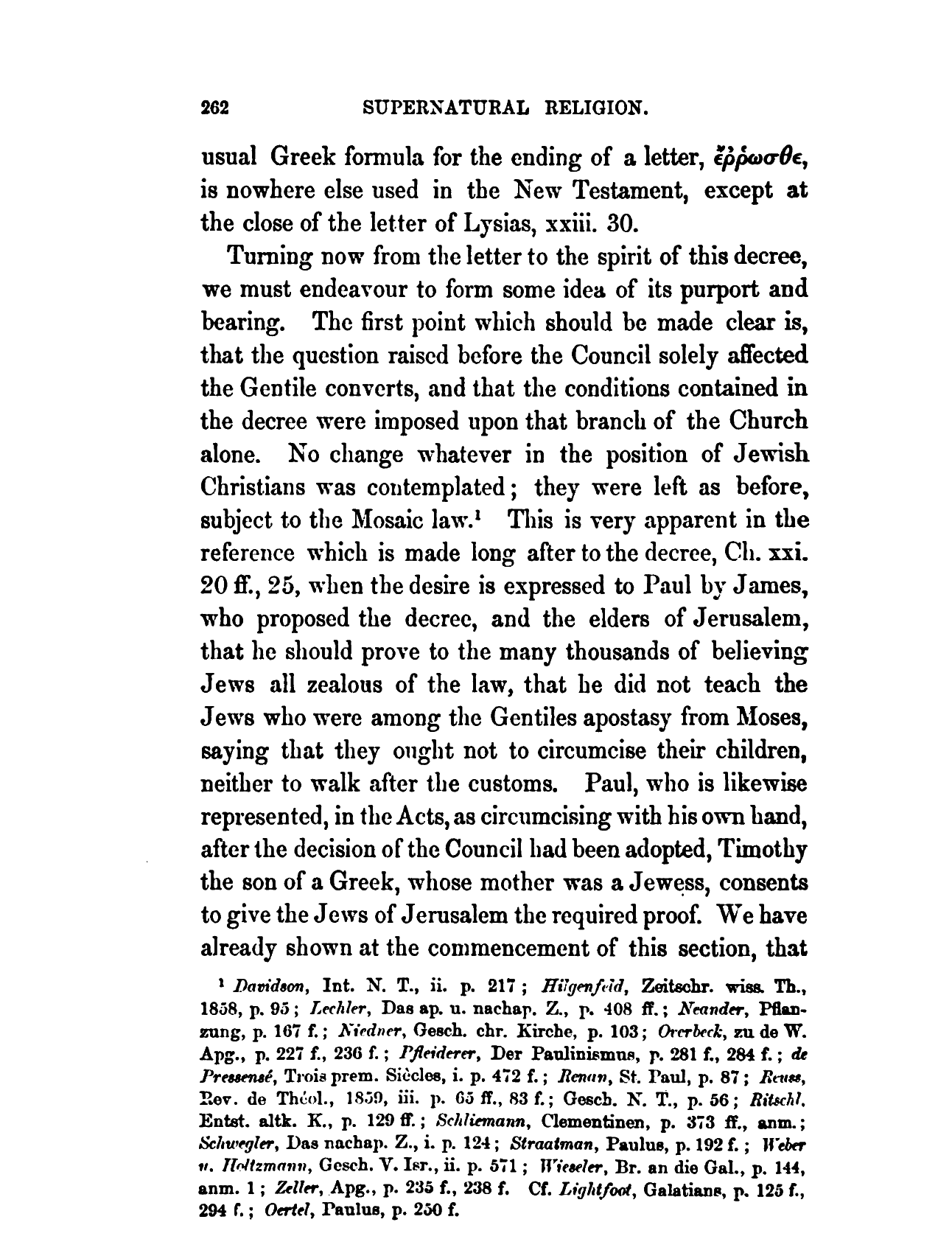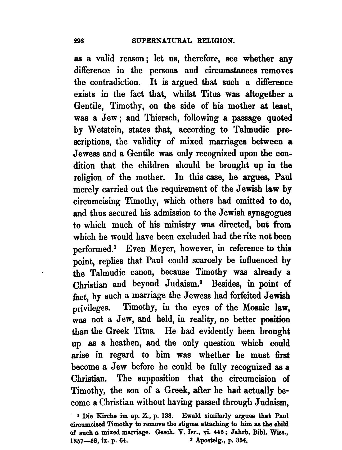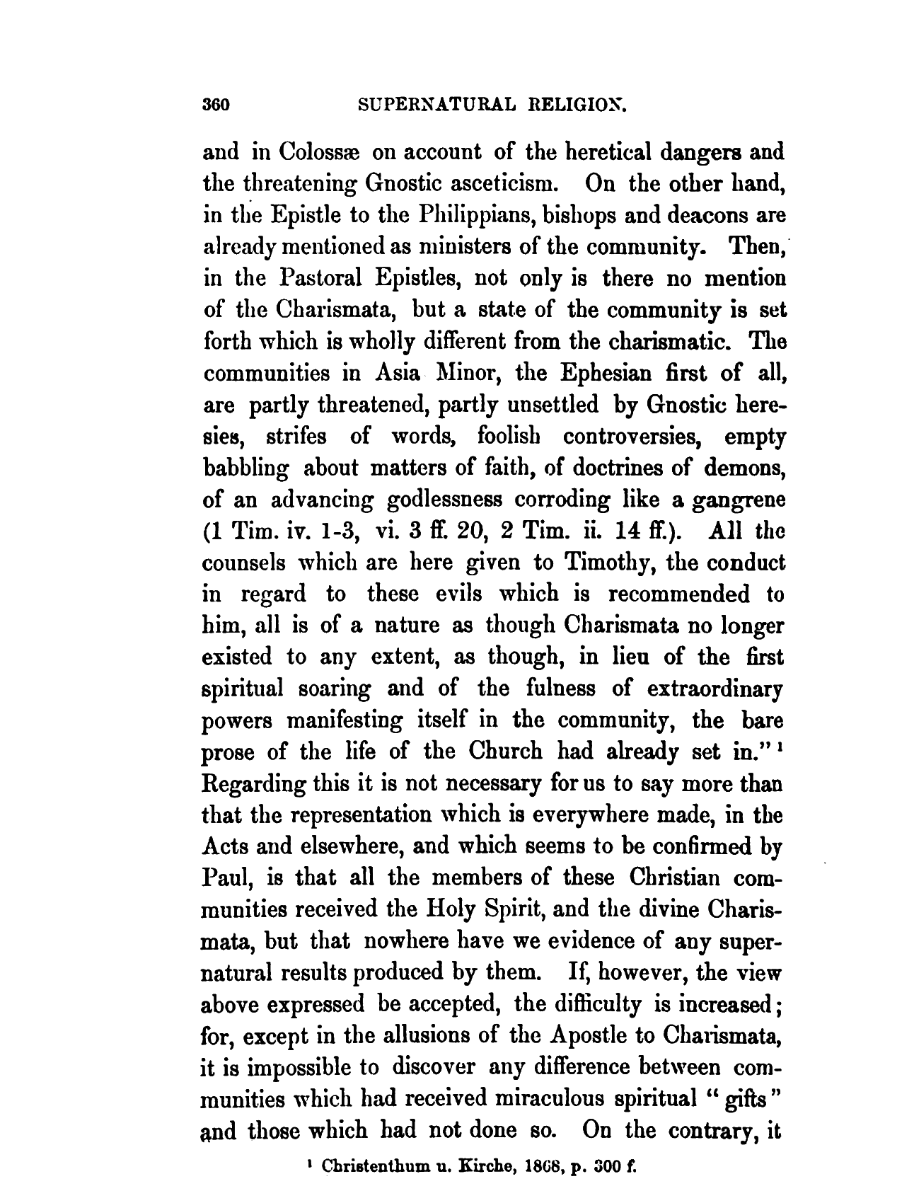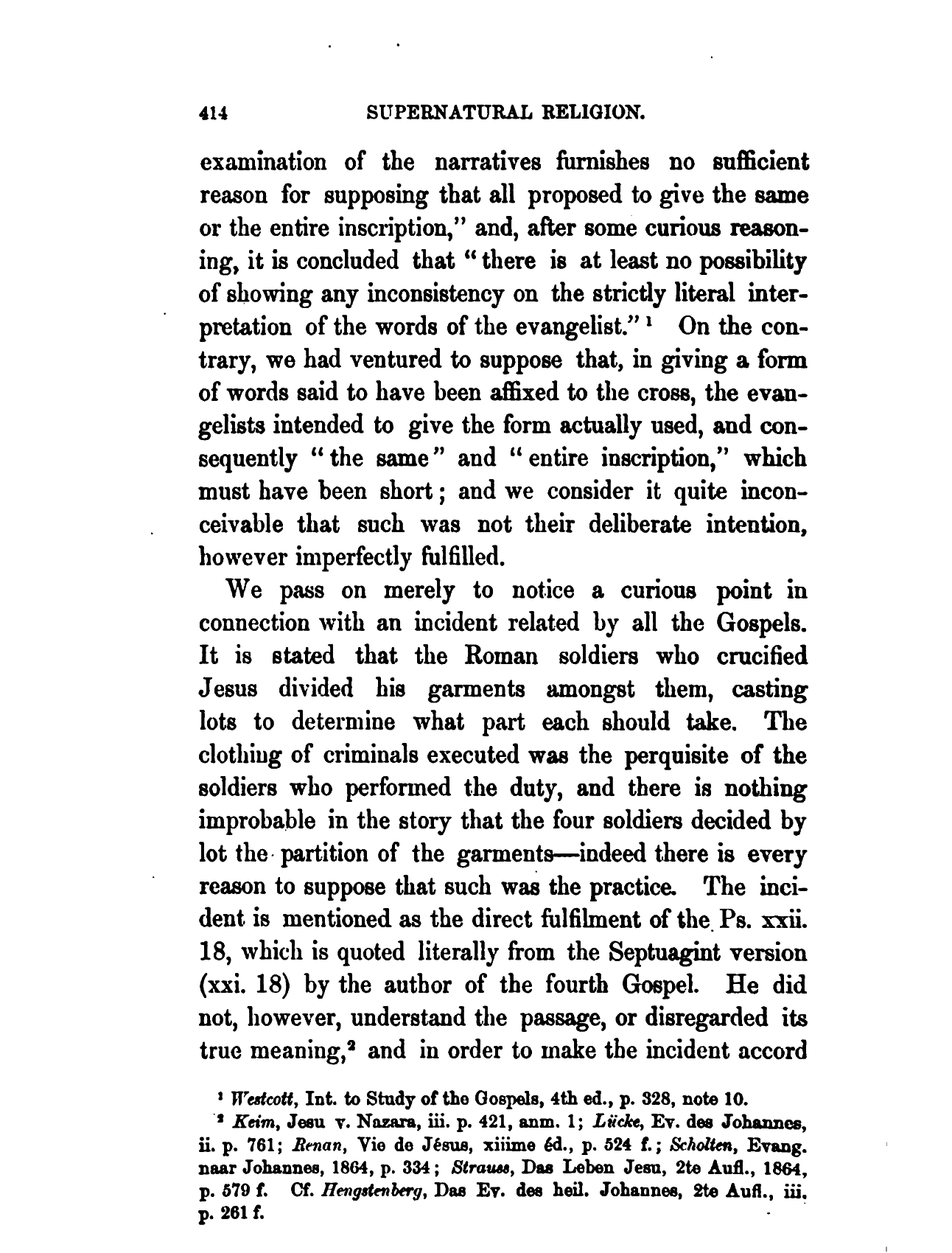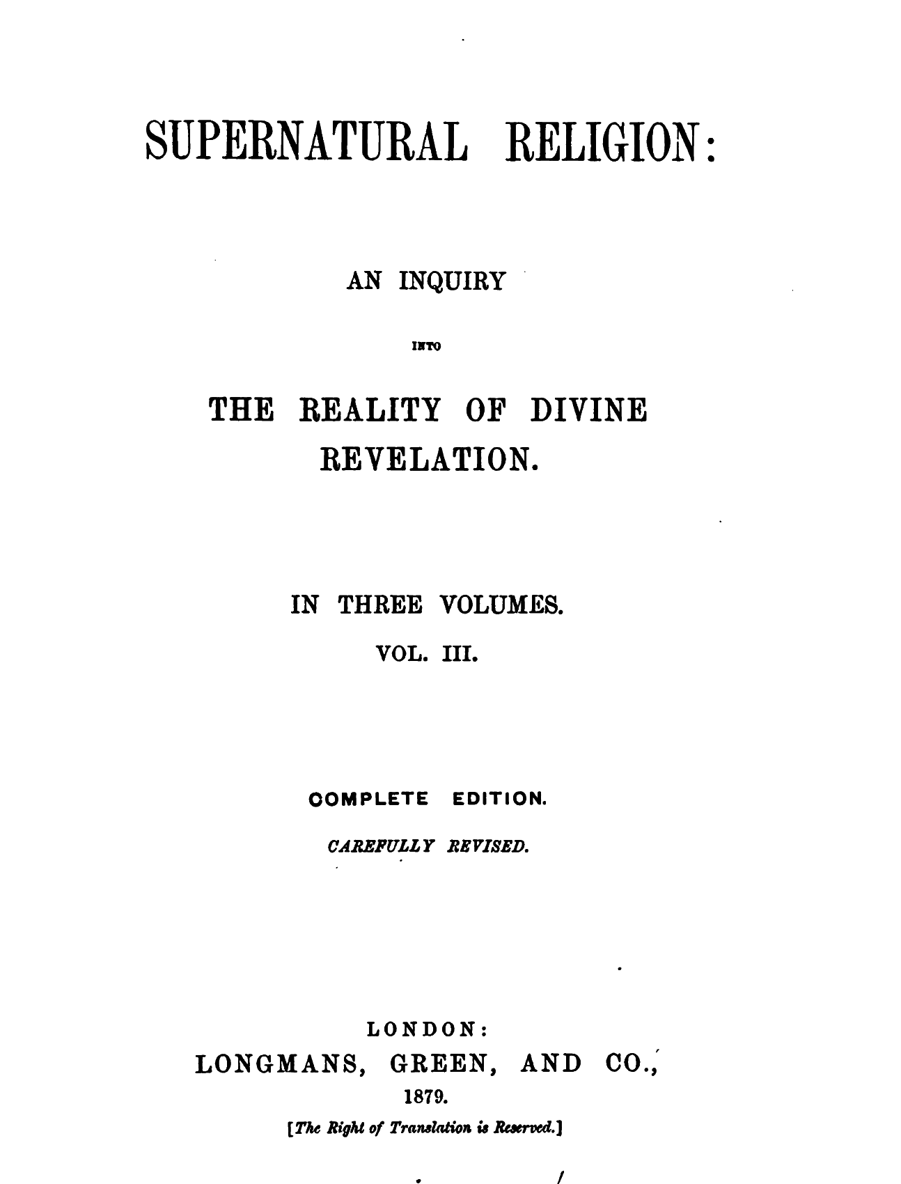 SUPERNATURAL RELIGION: AN INQUIRY INTO THE REALITY OF DIVINE REVELATION