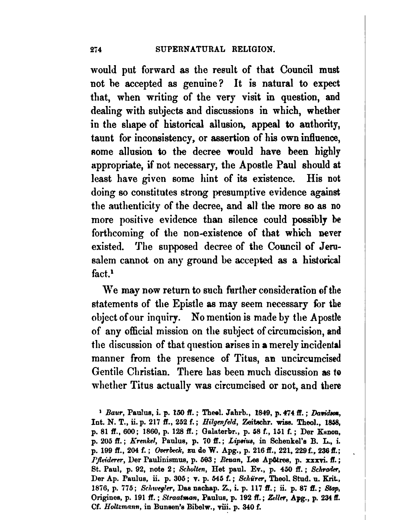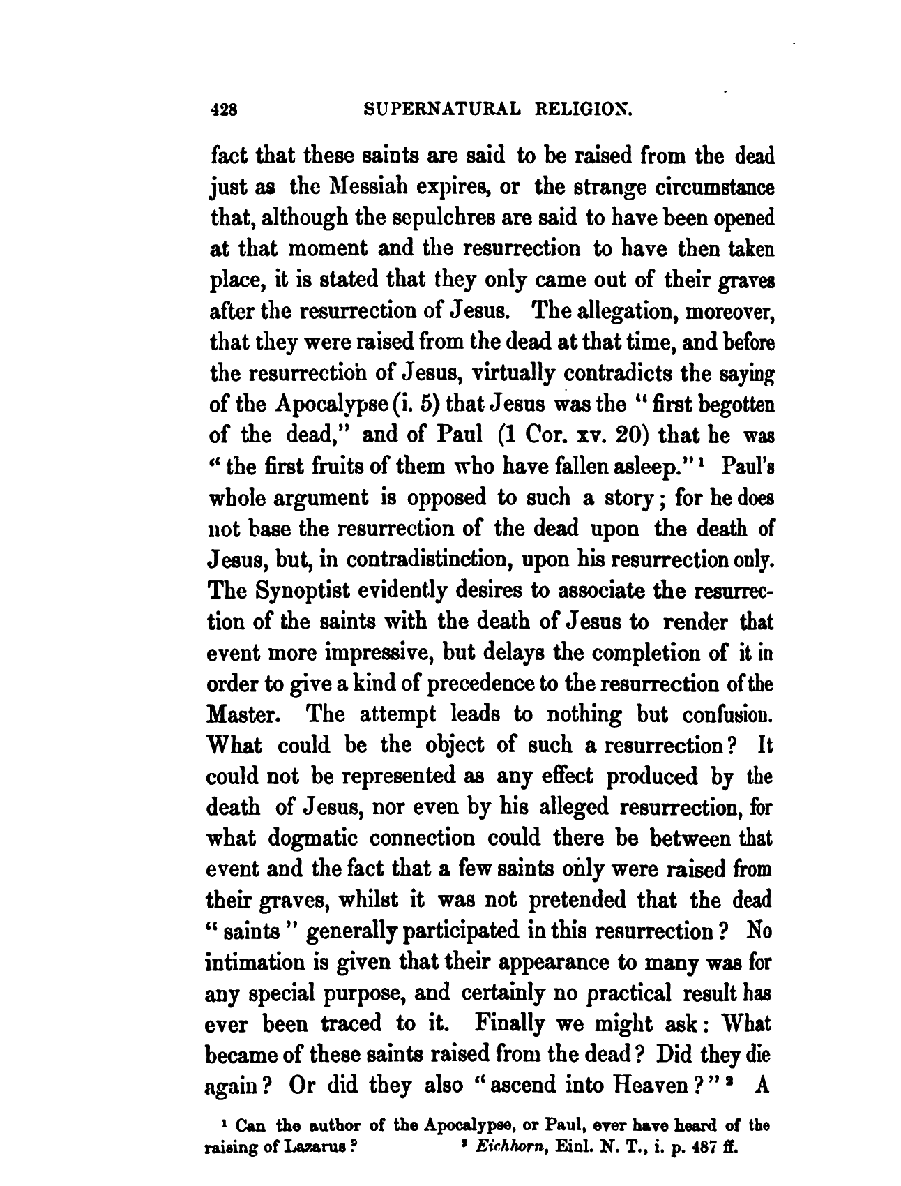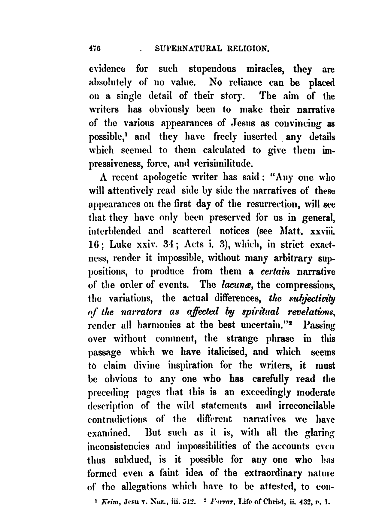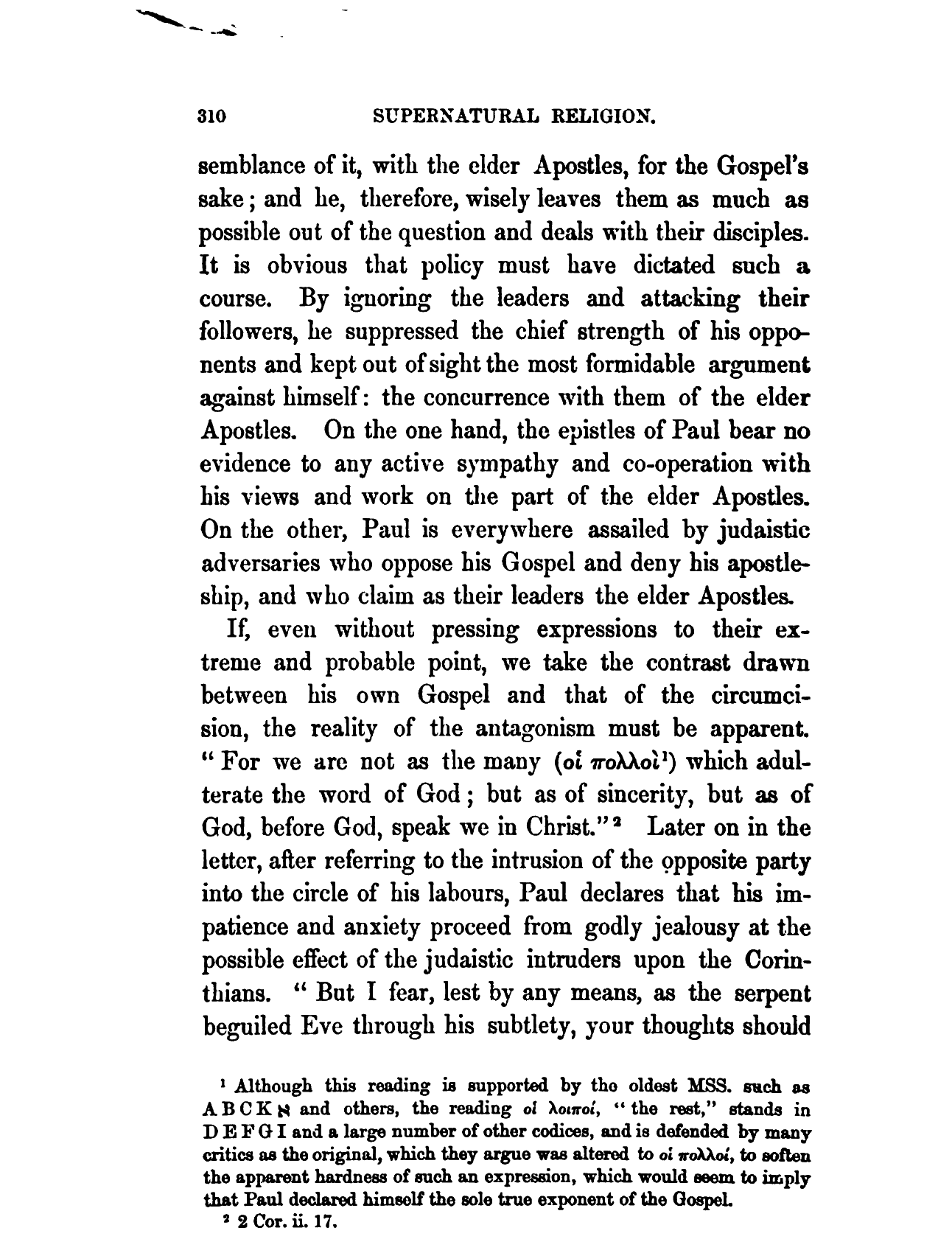 SUPERNATURAL RELIGION: AN INQUIRY INTO THE REALITY OF DIVINE REVELATION