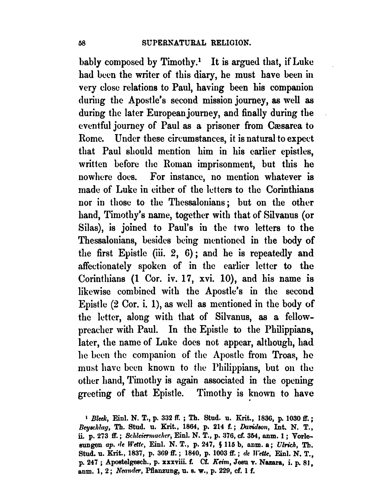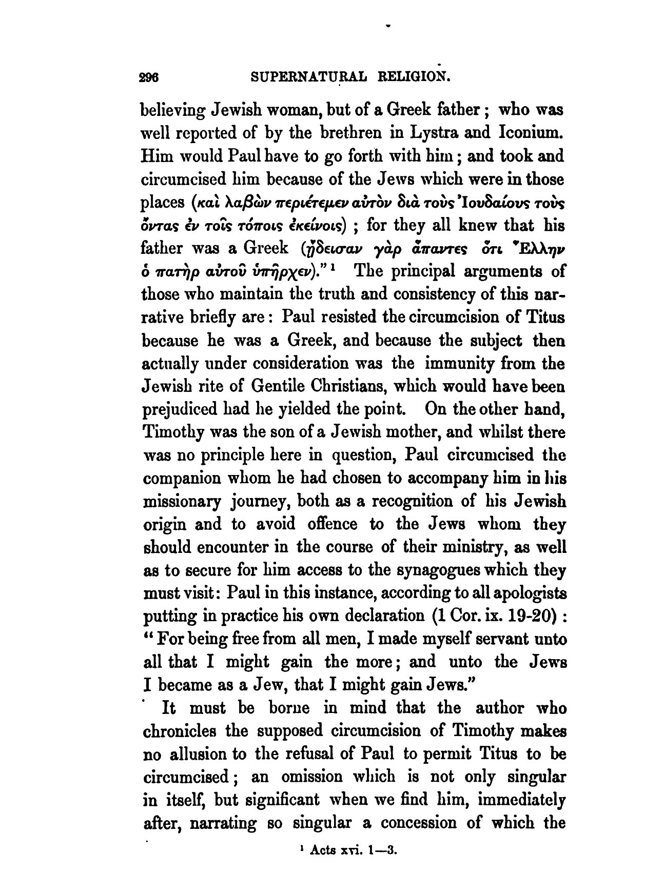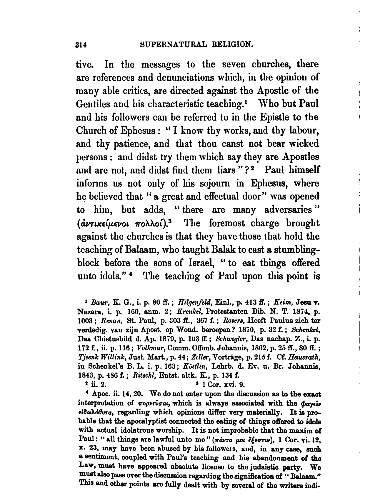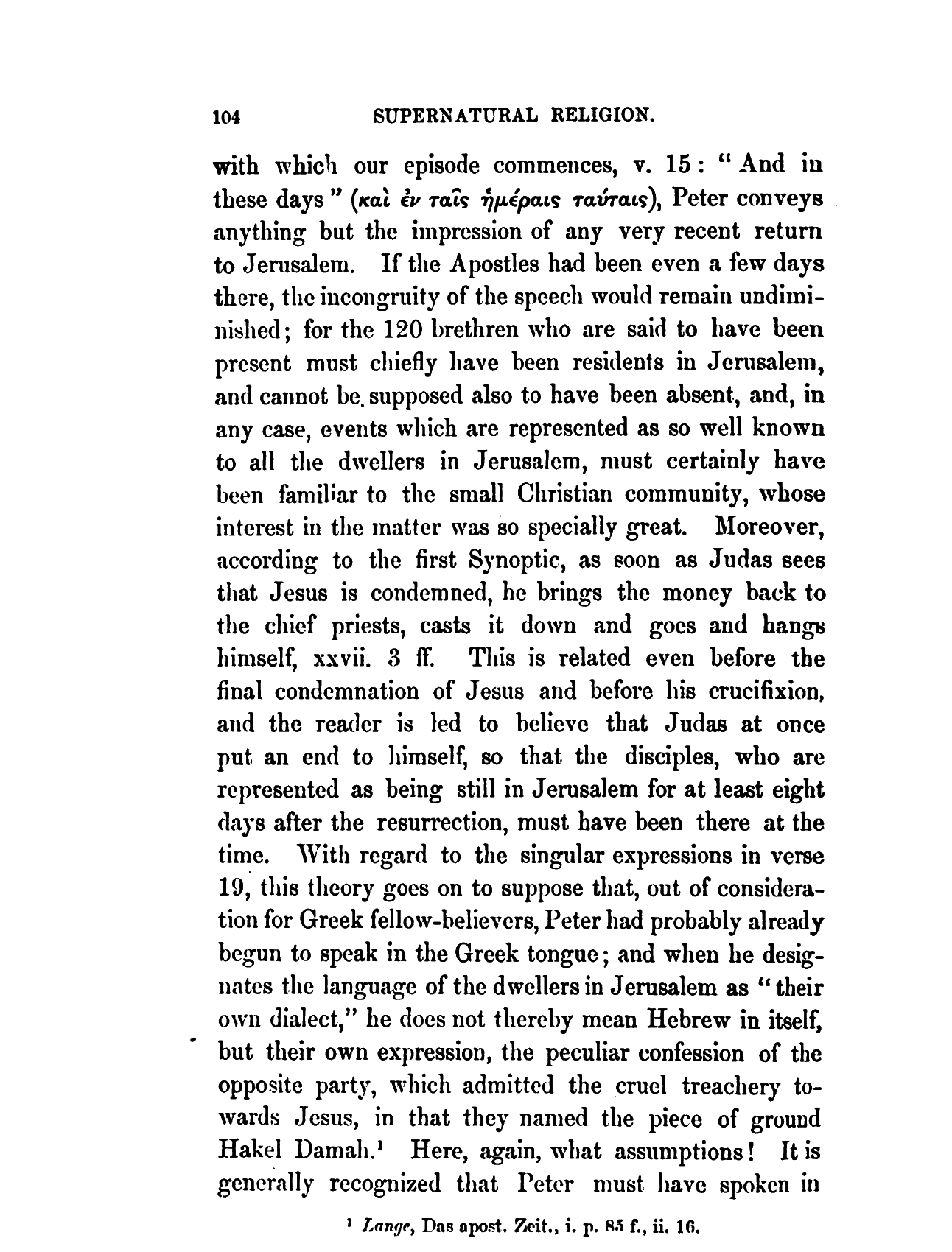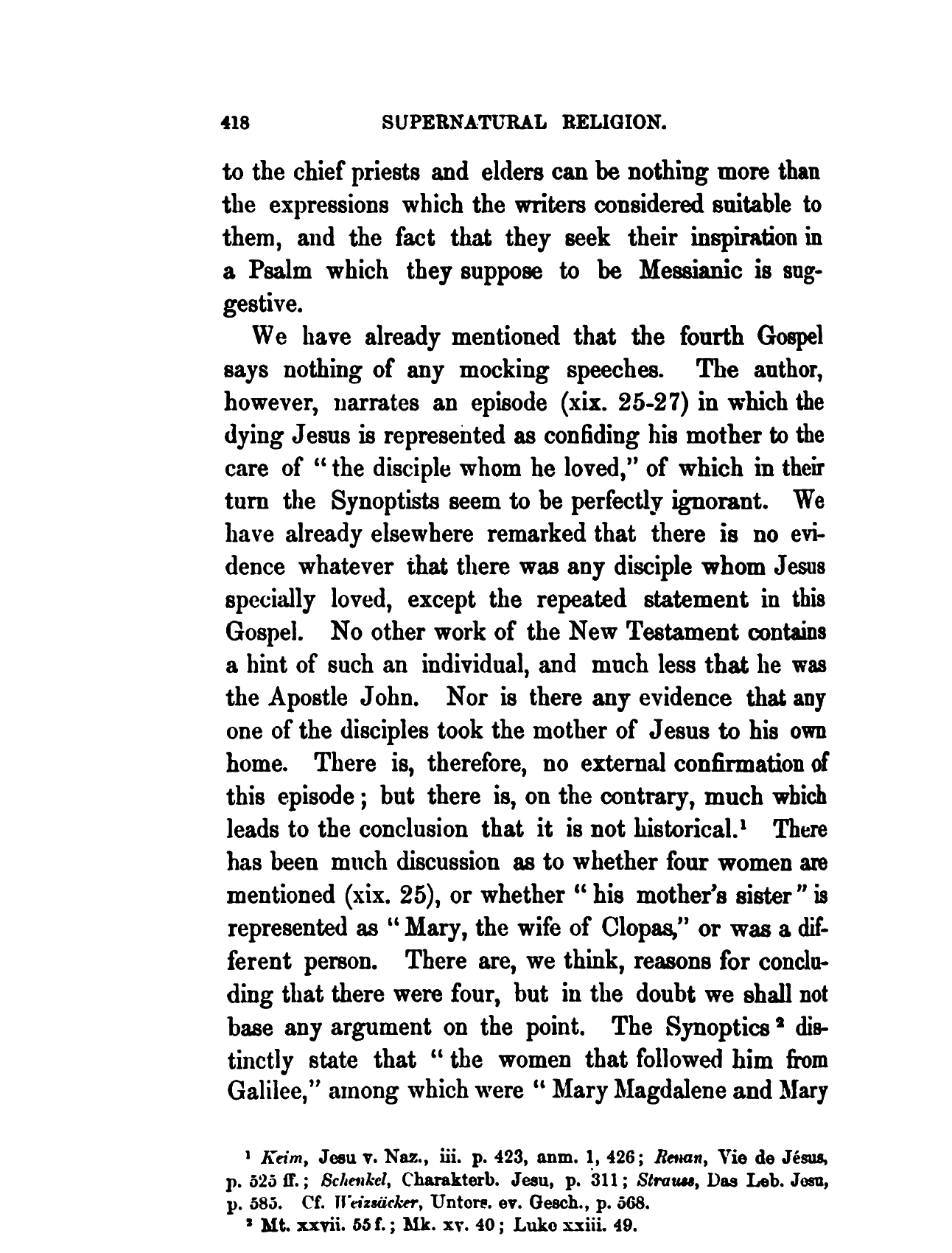 SUPERNATURAL RELIGION: AN INQUIRY INTO THE REALITY OF DIVINE REVELATION