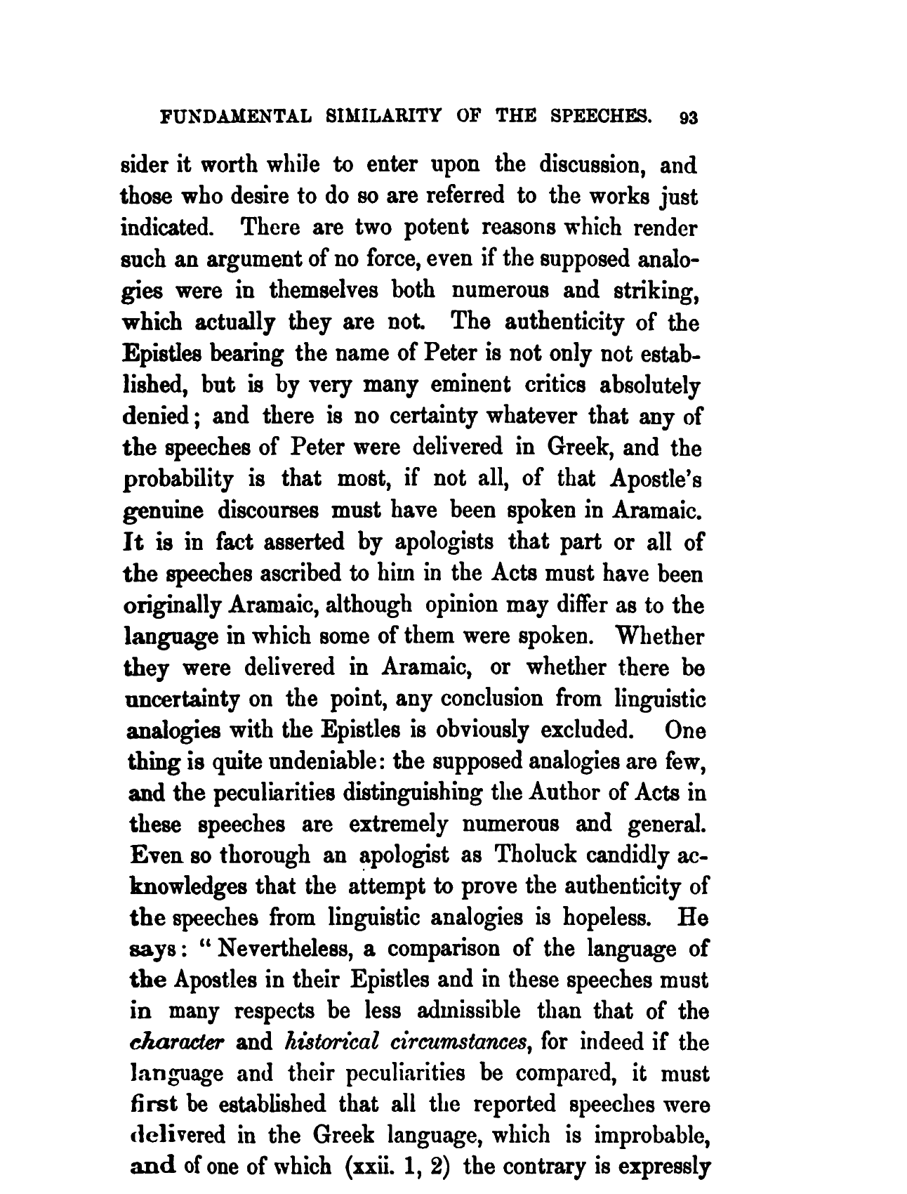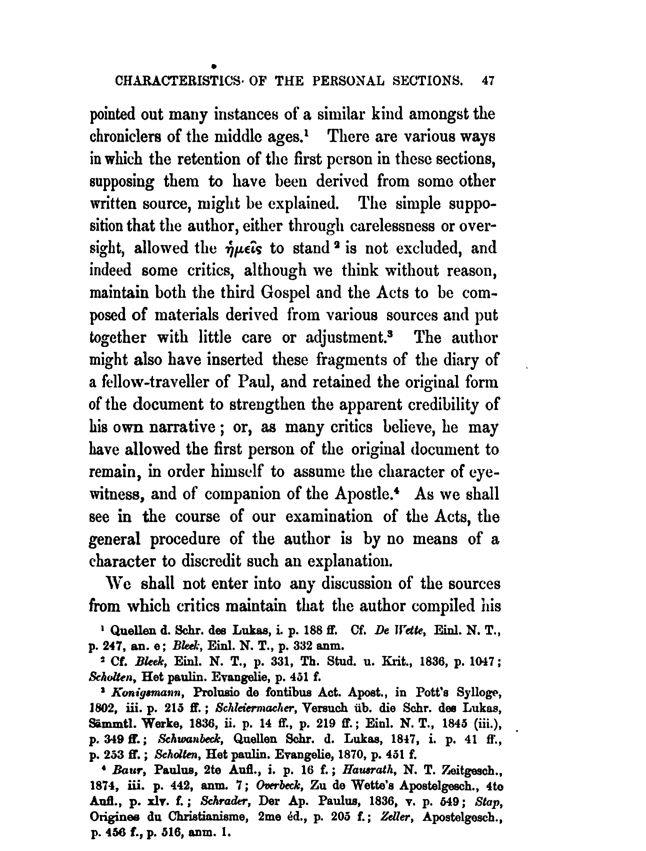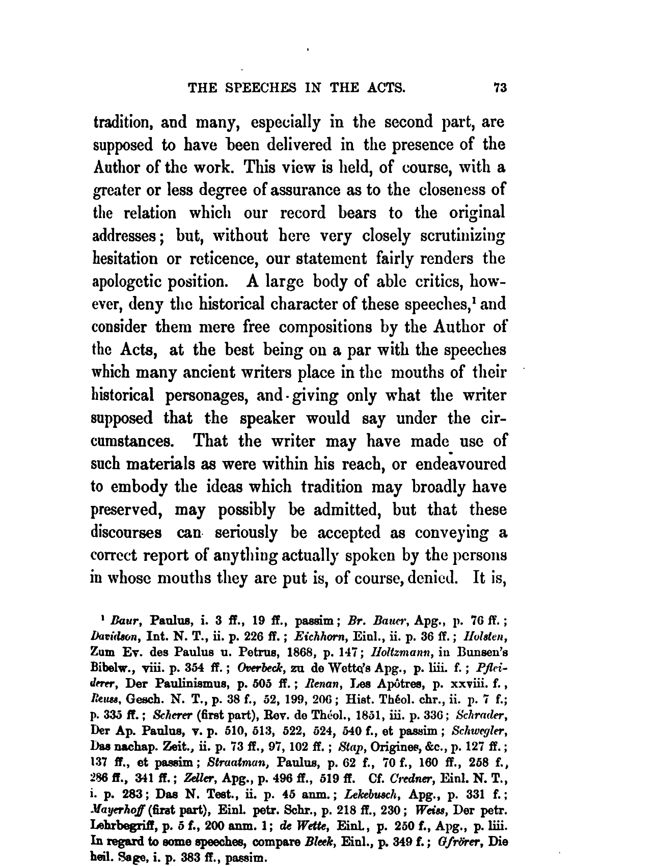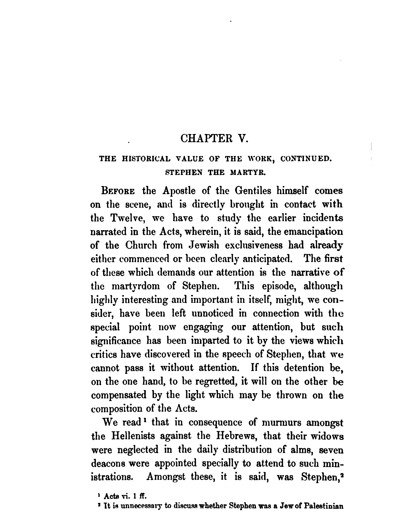 It must, however, be borne in mind that it is quite foreign to our purpose to enter into any exhaustive discussion of the literary problem presented by the Acts of the Apostles. We shall confine ourselves to such points as seem sufficient or best fitted to test the character of the composition, and we shall not hesitate to pass without attention questions of mere literary interest, and strictly limit our examination to such prominent features as present themselves for our purpose.