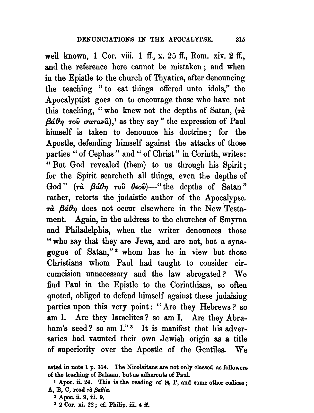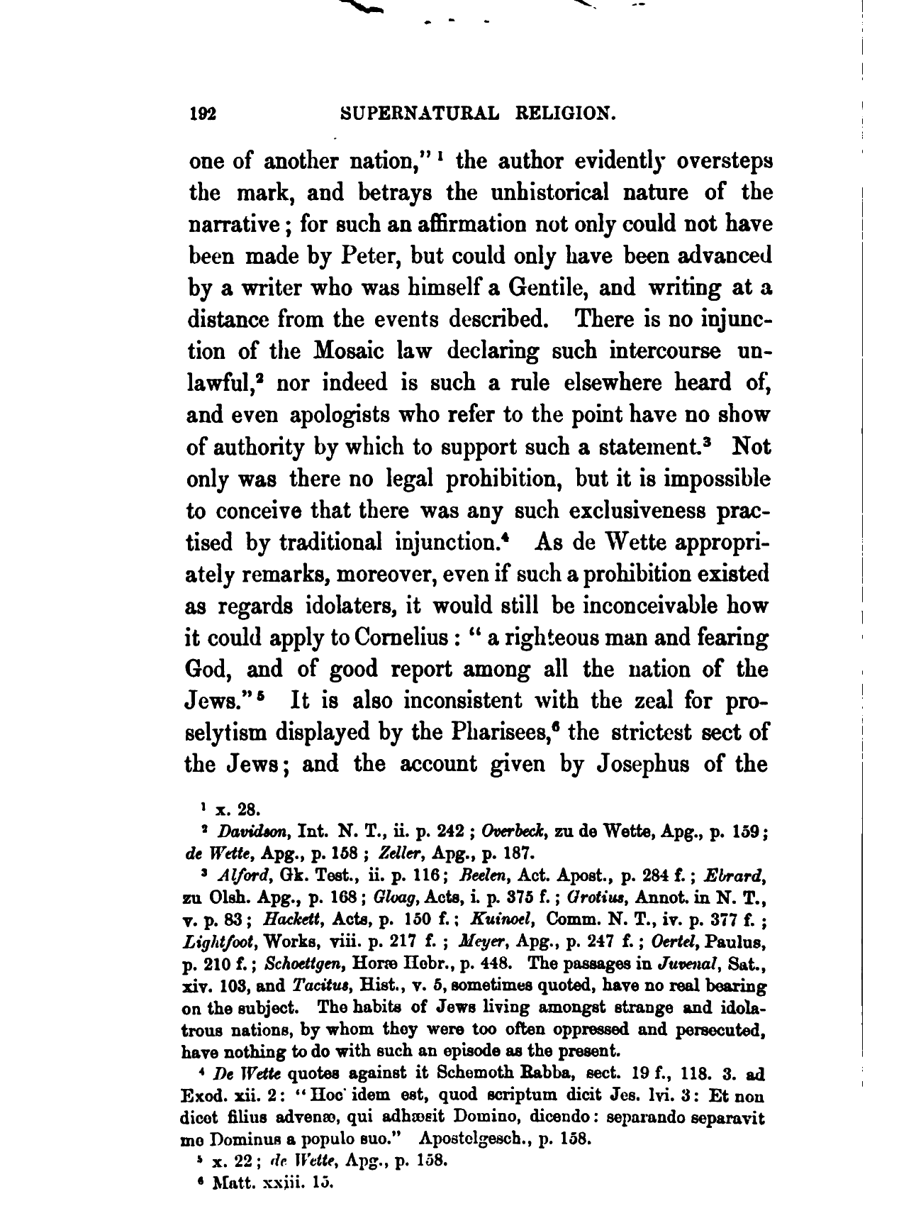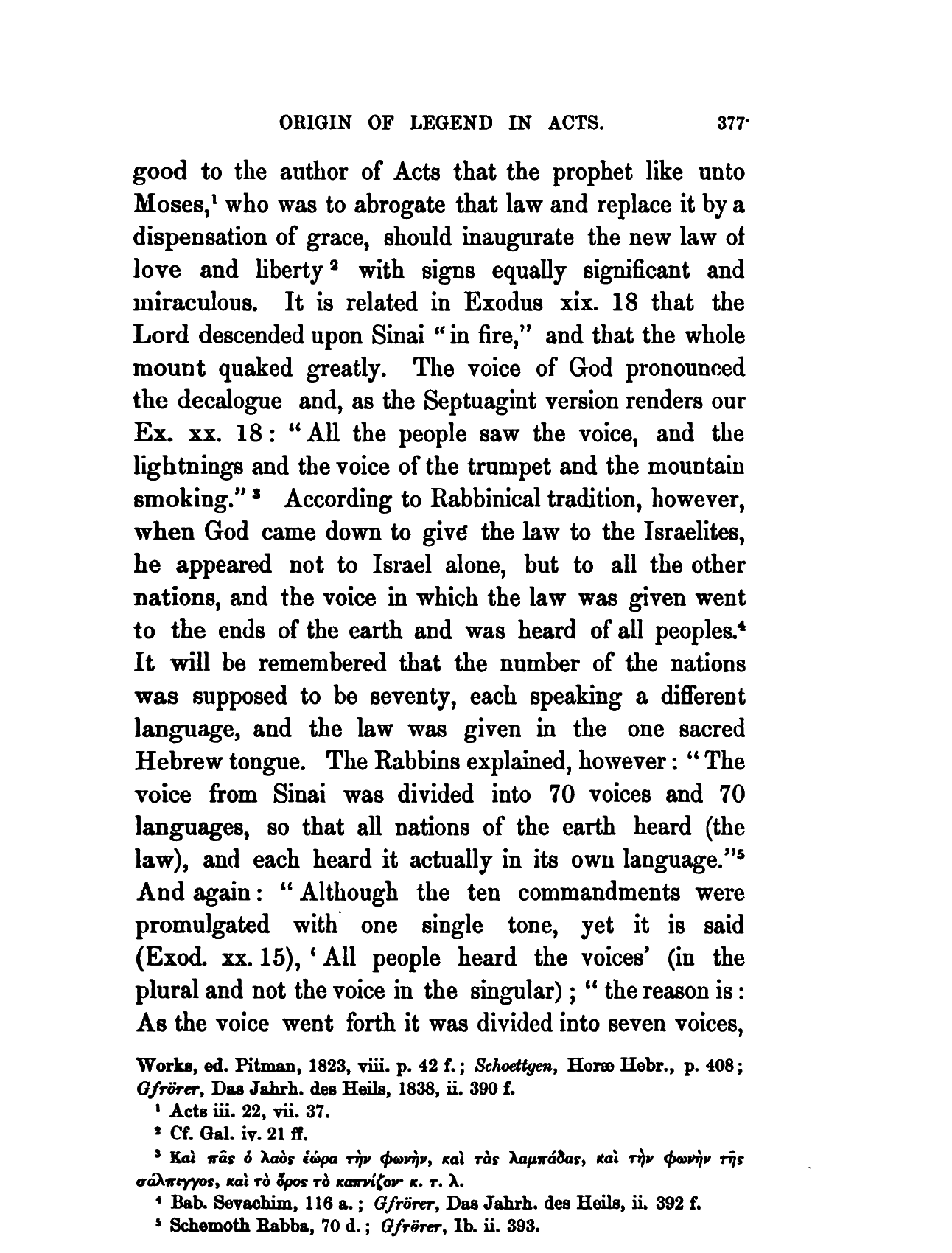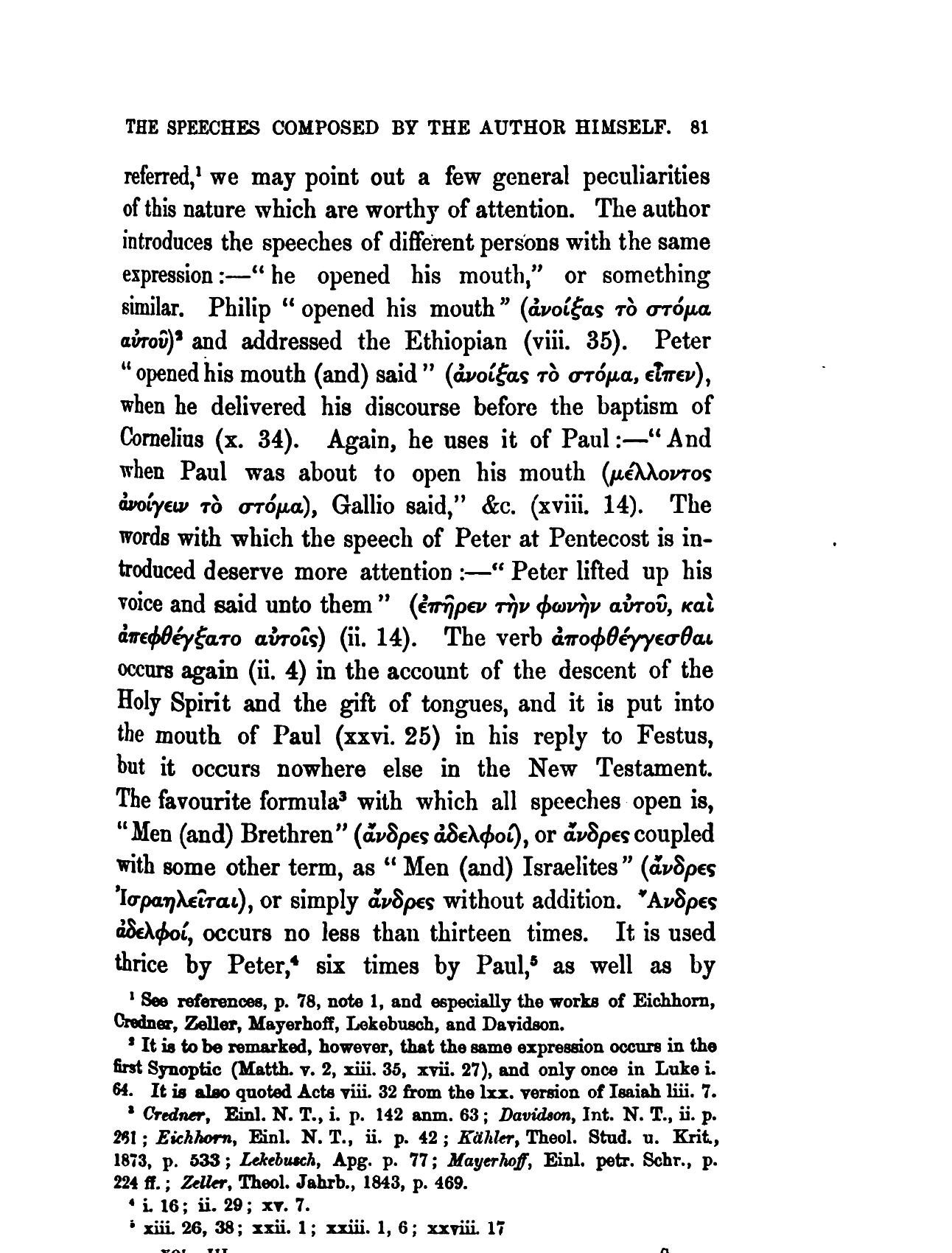 The slightest comparison of these passages suffices to show that the one is not dependent on the other. The Old Testament is full of passages in which the name of the Lord is magnified as the only source of safety and salvation. In the Pauline Epistles likewise there are numerous passages of a similar tenour. For instance, the passage from Joel ii. 32, is quoted Rom. x. 13: "For whosoever shall call on the name of the Lord shall be saved" [———](3) There was in fact no formula more current either amongst the Jews or in the early Church; and there is no legitimate ground for tracing such an expression to the Acts of the Apostles.(4)