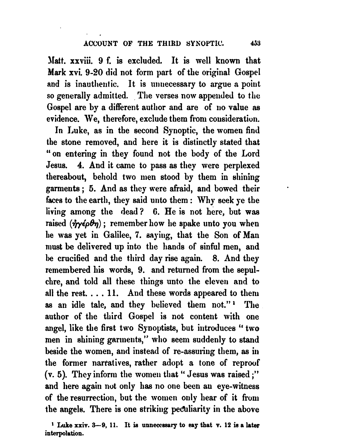We shall presently return to the question of the authorship of the third Synoptic and Acts of the Apostles, but at present we may so far anticipate as to say that there are good reasons for affirming that they could not have been written by Luke.(1)