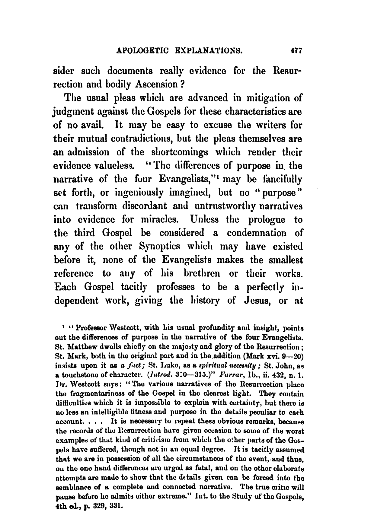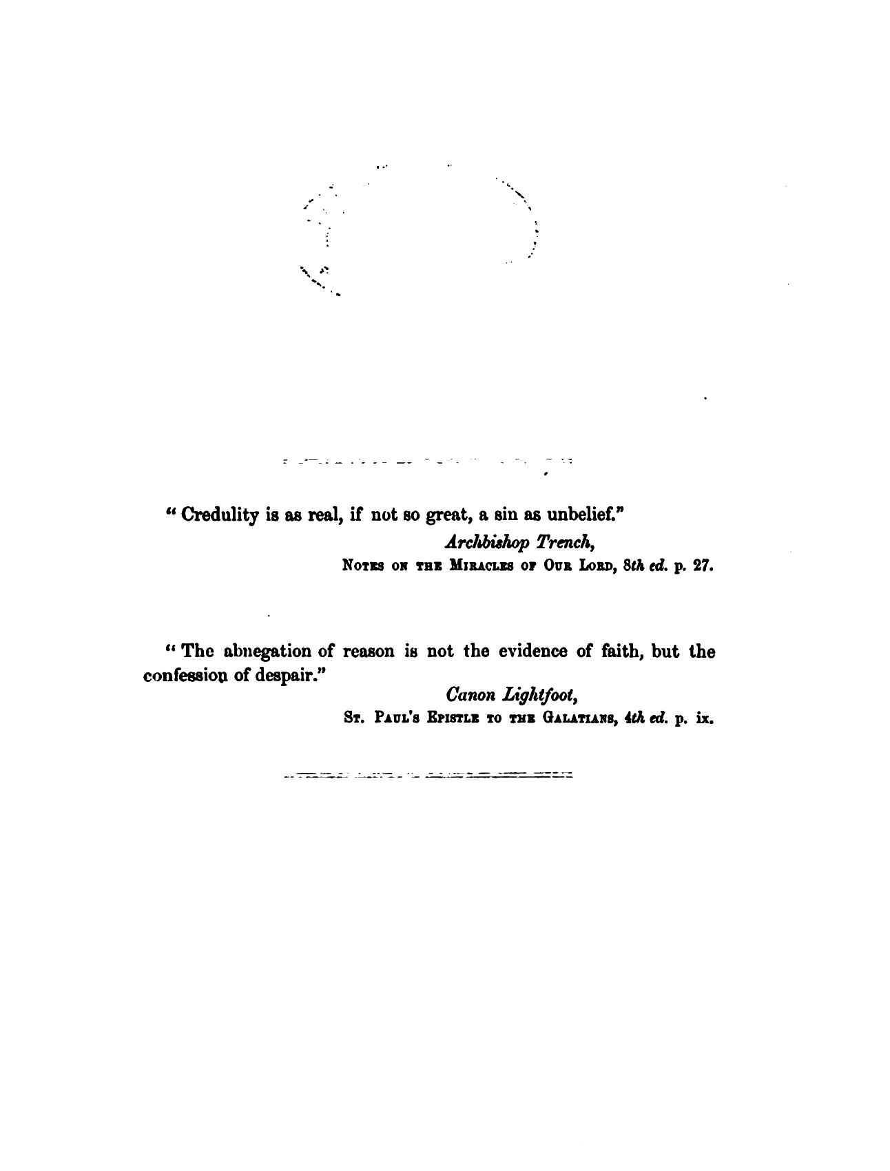 The remaining books of the New Testament Canon required no separate examination, because, even if genuine, they contain no additional testimony to the reality of Divine Revelation, beyond the implied belief in such doctrines as the Incarnation and Resurrection. It is unquestionable, we suppose, that in some form or other the Apostles believed in these miracles, and the assumption that they did so, supersedes the necessity for