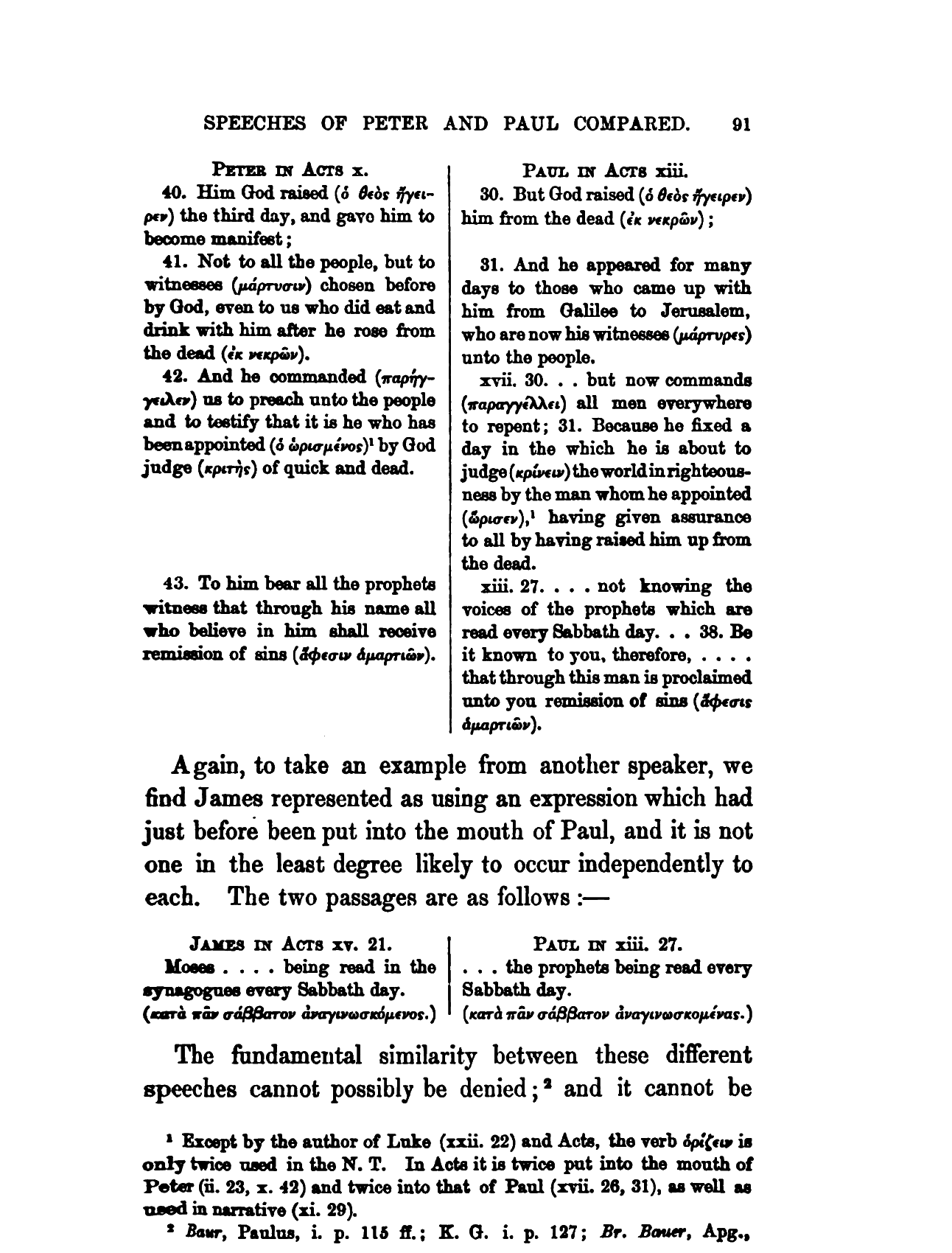 The only other passage which is quoted(1) as indicating acquaintance with Acts is the following, which we at once contrast with the supposed parallel:— [———]