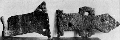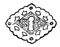 ![]() | PUNCHED BRASS KEY ESCUTCHEON 25⁄8" long, from the "Bin House," Jamestown |