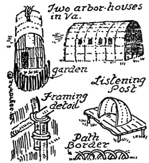 The round house had a domed roof. On the other hand, the "arbor" abode resembled, in the words of the English, "the arbories[7] in our gardens in England." The roofs of such habitations were arched in the form of a tunnel vault.