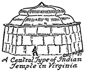 When the first English colonists arrived before Jamestown Island, Virginia, on May 13, 1607, there was already in existence an indigenous architecture which had been flourishing in that land for hundreds of years. It is true that that particular kind of architecture, American Indian, was, by and large, a perishable wooden one; nevertheless, the subject may not be ignored by stating that it did not exist. This Indian art of building forms an important chapter in the early history of Virginia.