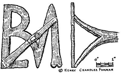 [6]Within this burial mound classification may be included the "cairn," a Gaelic name meaning "the heap," and comprising a grave under a small pile of stones. The largest of such rock heaps is said to be fifteen feet in diameter and three feet high. Several small cairns have been located on the banks of the Rivanna.