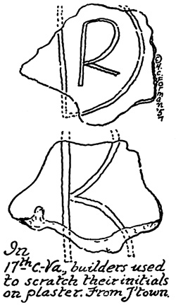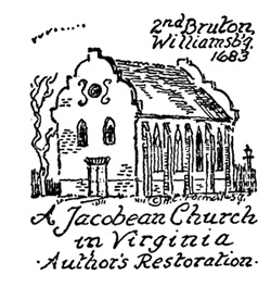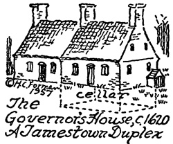 The writer has endeavored to approach this task with understanding and sympathy, for which he is qualified. He has lived on the Jamestown road in Williamsburg and has Jamestown in his blood; he has written and lectured much on Virginia; is currently a registered architect in that Commonwealth; and on both[vi] sides of his family traces his descent back to the seventeenth-century Chews, Brents, Ayres, and Skipwiths, who, living along the banks of the James River, saw much of the architecture described herein. In the preparation for this little work, two incidents stand out as being important and essential: in 1936 he was a house guest of the Association for the Preservation of Virginia Antiquities and lived in its "Malvern Hill" reproduction at Jamestown while he made studies of the ruins on that property; and in 1940 he stayed several nights on the Pamunkey Indian Reservation, near West Point, as guest of those Virginia Indians, while he made a study in art and archaeology in part preparation for the doctorate.
