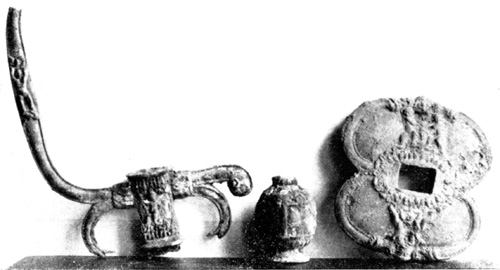 That some of these immense buildings were not without ornament is proven by the description of the sculptured corner posts of the Orapaks Treasure House. There were figures resembling a bear, leopard, dragon, and giant man. Another popular architectural sculpture was the bird, such as eagle, which was set upon great Indian edifices.