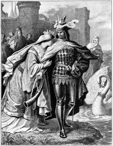 While the swan sailed slowly down the river the knight advanced to the king's throne. "I have come, O King," he said, "to do battle for the Princess Elsa." Then did Elsa and all the people mark his noble bearing. Never before had they seen a knight so strong and fearless.