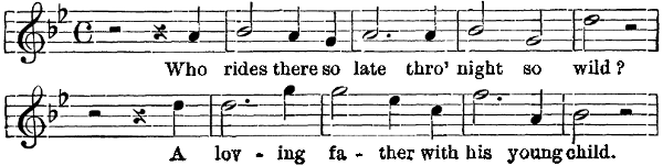 He lifted the half-fainting Elsa to the couch. Kissing her upon the forehead, he said, "Alas! we shall be happy no more." As he left the room, he turned at the door, saying, in a low, sad tone, "To-morrow, before the king, I will tell you all that you ask."