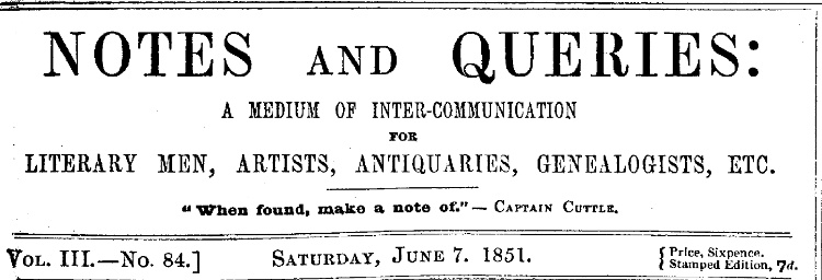 | Vol. III Index | January-June 1851 | PG ebook #26770 |