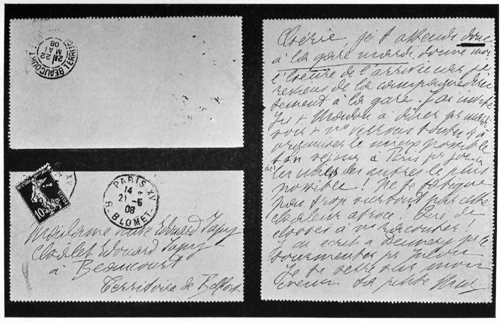 ("Monsieur et Madame Edouard Japy have the honour to inform you of the birth of a daughter." Beaucourt, April, 16th, 1869.)