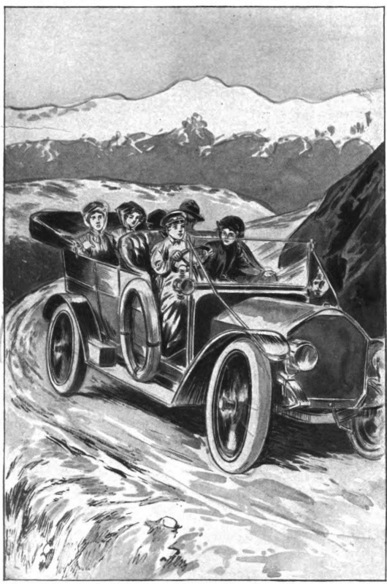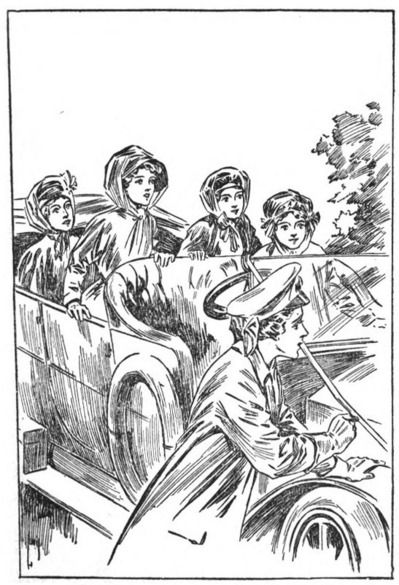 With a happy laugh, Billie jumped into her seat behind the wheel. The other girls were already 7 in their accustomed places. One of the attendants from the hotel gave the crank a dexterous twist; there was a throbbing sound of machinery in action, and off shot the Comet like a spirited horse, eager to be on the road.