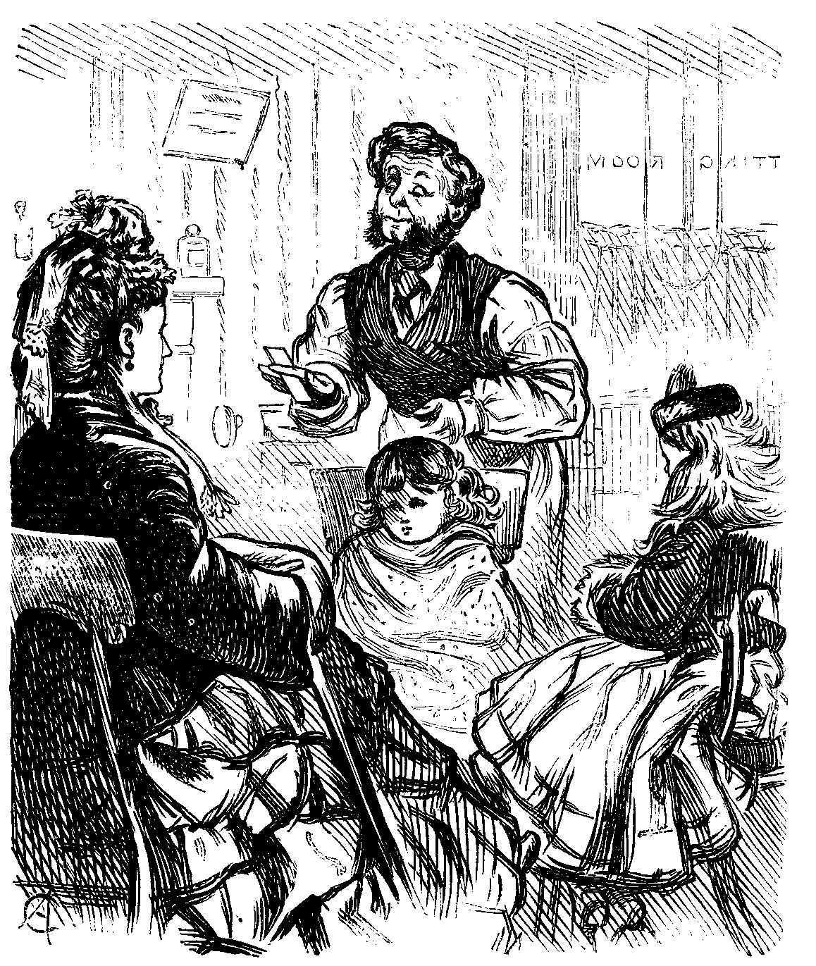 Fond Parent. "I hope you will be very Careful, Mr. Stimpson. I have always been accustomed to Cut their Hair myself."