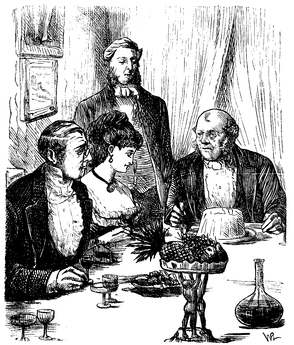 Mr. Punch smiled, and gently said that of course he must be the best judge of what his friend the Universe required at his hands, and this proposition was conceded with respectful acclamation. He might just suggest that his Pocket-Book, although a precious jewel, was not a thing to be locked up in a cabinet, but one to be the light and joy of a household for a year, but it might not be so evident that personal entries, as "Charles very cross"—"Sweet letter from Arabella," "Bless Smithson's mistletoe!" "I hate Aunt Popkins," "Said I had not dined at Greenwich:" "Ridiculous sermon by new curate," and the like, were equally adapted for the perusal of the said household. Such things might be confided to a humbler receptacle. But the pleas being renewed, without reference to the answer (we need hardly remark that most of his visitors were of the sex "that can't argue, and pokes fires from the top," as good Archbishop Whatley said) Mr. Punch blandly promised that the views of the deputation should receive the utmost consideration at his hands. And when he had thus spoken he dismissed the assembly—or rather conducted it to a sumptuous, yet delicate lunch.