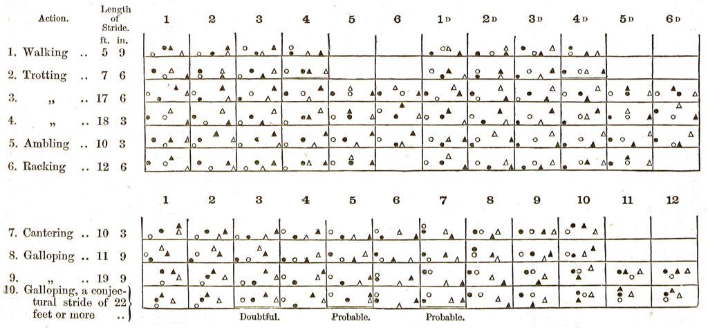 It appears somewhat remarkable that until the results of M. Marey's experiments and of those obtained by electro-photography were published, many experienced horsemen were of opinion that during the action of trotting at least one foot of a horse was always in contact with the ground.