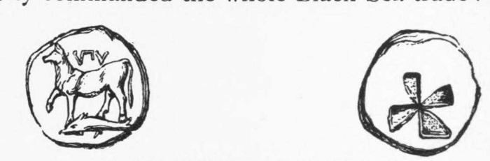 From the first its situation marked out Byzantium as destined for a great future. Alike from the military and from the commercial point of view no city could have been better placed. Looking out from the easternmost headland of Thrace, with all Europe behind it and all Asia before, it was equally well suited to be the frontier fortress to defend the border [pg 004] of the one, or the basis of operations for an invasion from the other. As fortresses went in those early days it was almost impregnable—two sides protected by the water, the third by a strong wall not commanded by any neighbouring heights. In all its early history Byzantium never fell by storm: famine or treachery accounted for the few occasions on which it fell into the hands of an enemy. In its commercial aspect the place was even more favourably situated. It completely commanded the whole Black Sea trade: every vessel that went forth from Greece or Ionia to traffic with Scythia or Colchis, the lands by the Danube mouth or the shores of the Maeotic Lake, had to pass close under its walls, so that the prosperity of a hundred Hellenic towns on the Euxine was always at the mercy of the masters of Byzantium. The Greek loved short stages and frequent stoppages, and as a half-way house alone Byzantium would have been prosperous: but it had also a flourishing local trade of its own with the tribes of the neighbouring Thracian inland, [pg 005] and drew much profit from its fisheries: so much so that the city badge—its coat of arms as we should call it—comprised a tunny-fish as well as the famous ox whose form alluded to the legend of the naming of the Bosphorus.1