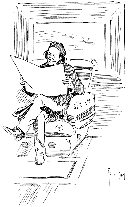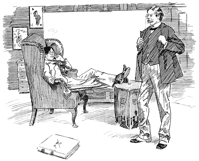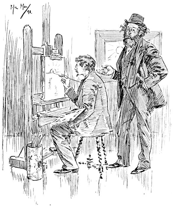 Proprietor of Old-Fashioned Inn: "Yes, sir, an' he be the laziest man I ever came across. He do nothing but dror and paint all day!"