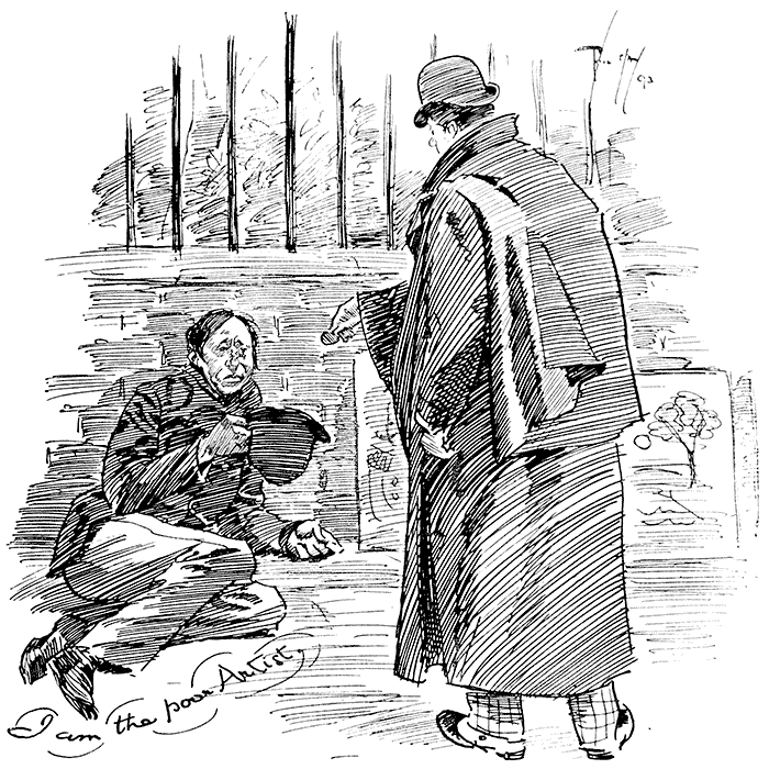 Crossing Sweeper: "'Ere, if you're goin' to sweep the bloomin' crossin' yerself, I'm hoff."