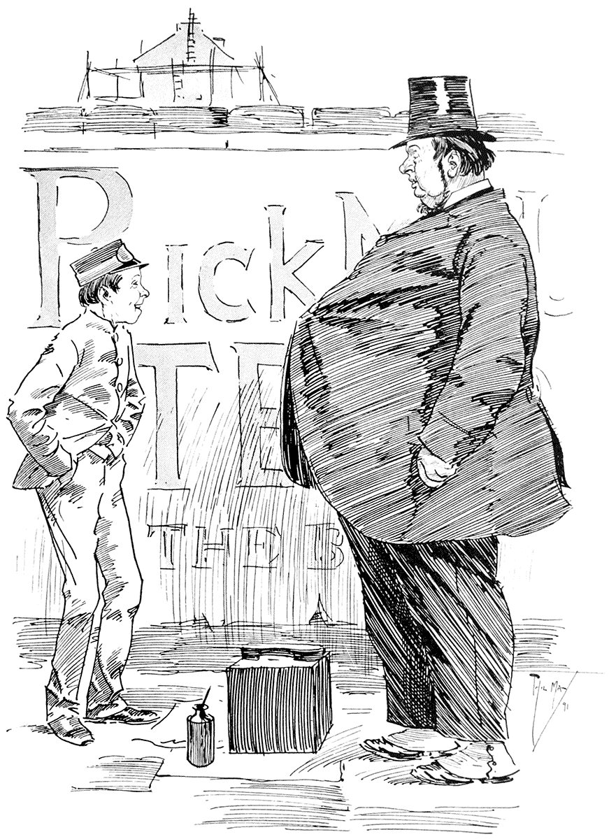 Tragedian (with learned dignity): "Cudgel not thy brains with words higher than thy bloomin' salary."