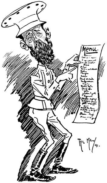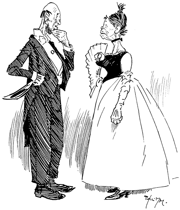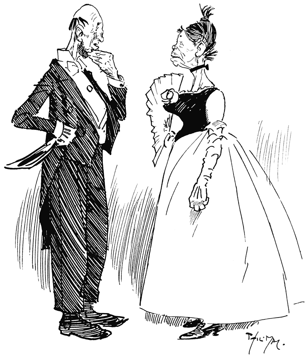 Little Spriggins: "Yes, we always dine at a private table. You see, my wife is so fond of picking bones."