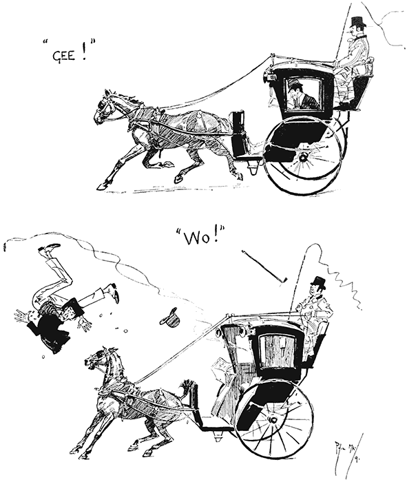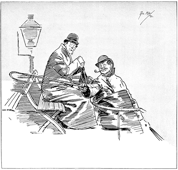 Brown (who likes to be thought a swell, and who has been entrusted with a friend's brougham for the night): "Home, John."