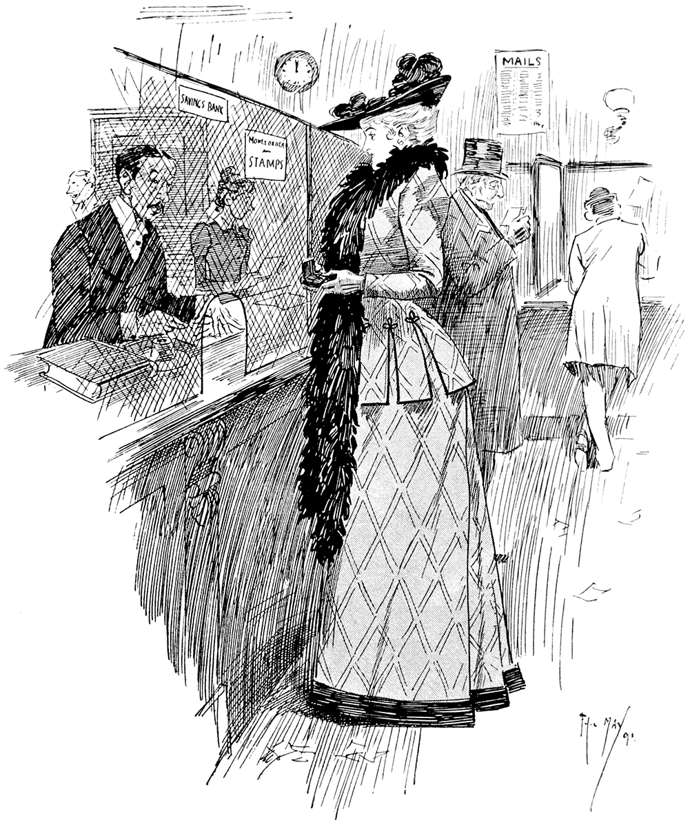 Clerk: "The letter is too heavy. It will require an extra stamp."