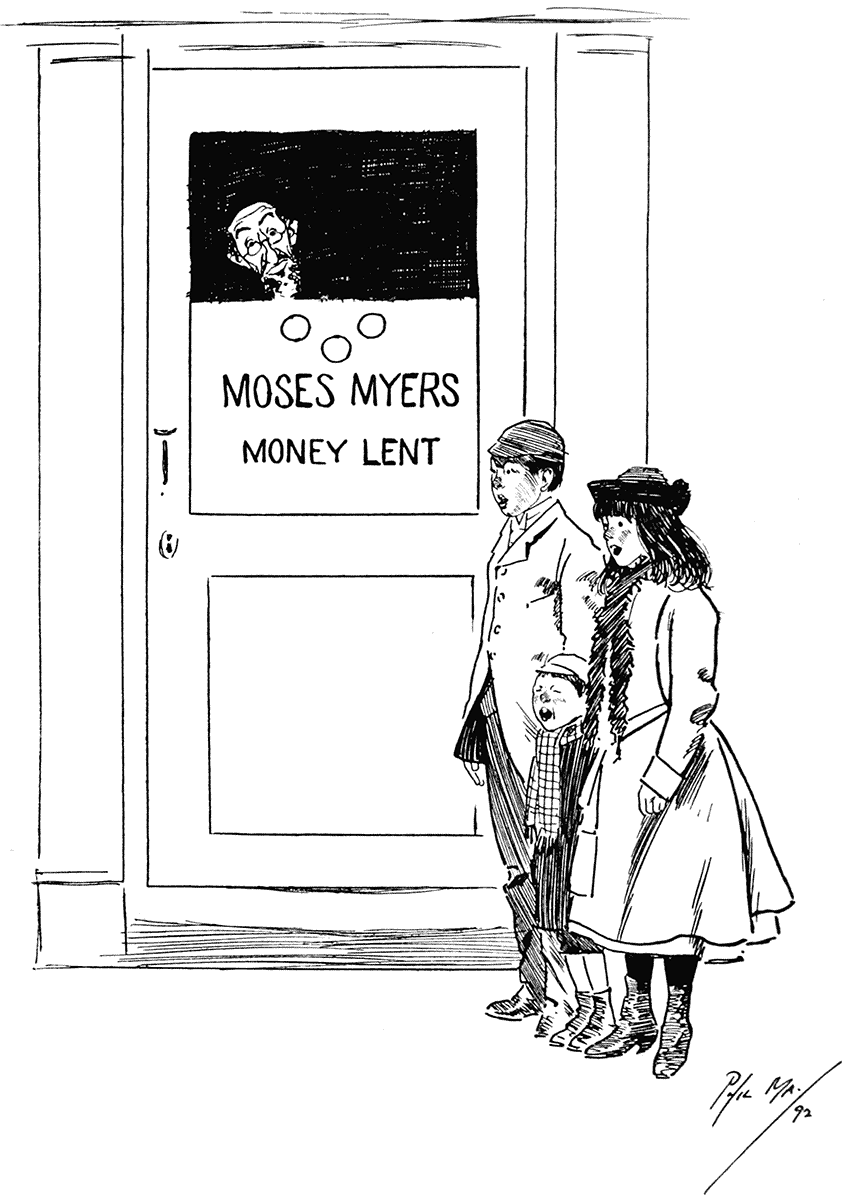 First Philanthropist: "Cannot we start a society for the employment of the poor Russian Jews?"