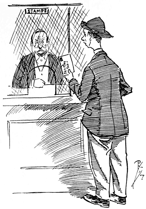 Yokel: "Say, sir, does I put this 'er stamp on meself?"