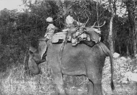 As the ground to be traversed contained no towns where I could purchase supplies, I had to make my own arrangements for food as well as transport. I might find an empty dâk bungalow here and there; but it behoved me to carry a tent with me. So, dispatching my pony and an elephant loaded with my baggage and stores to march across country and meet me at Jalpaiguri, I went by train to this station, reaching it of course several days before my animals could arrive. There I borrowed an elephant from the police officer, bought some tinned provisions and flour, and set out west along the twenty-four miles of road to the spot where I was to begin my sketch. I was fortunate in finding dâk bungalows on it every ten or twelve miles in which to shelter at night. At the first of these I was informed by the native in charge of it that on a tank—as ponds and lakes are called in India—about six miles away I would find hundreds of duck. So I shouldered my gun and set out across the fields. I discovered the tank and from a distance saw that the water was dotted with birds. Cautiously stalking them, with glowing anticipations of wild duck for dinner, I reached the bank to find that they were coots and "divers." Not even a snipe rewarded me for my long walk; and I returned to the dâk bungalow to give my misinformant my candid and unflattering opinion of him.
