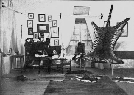 As I sat smoking after dinner out in the compound under the stars I heard the tinkle of bells coming along the road and drawing nearer and nearer. Then past the gate of the enclosure around the bungalow a native postman shuffled by at a dog-trot, his spear and bells over his shoulder. I stopped him and asked him if he had heard of the tiger.