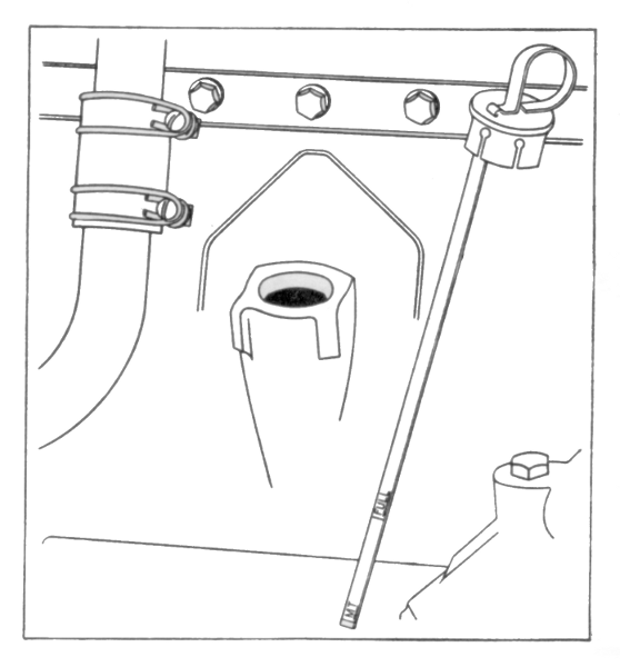 If cold weather prevails, be sure the oil you use will flow at the temperatures encountered. Oil supply should be maintained at the full mark on the bayonet gauge at the oil filler.