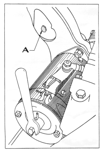 8. Set carburetor throttle stop screw "A" so that engine idles at a speed equal to a car speed of 5 m.p.h. in high gear.