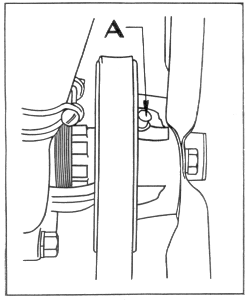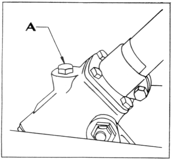The clutch throwout bearing should be lubricated with one ounce of light viscous grease[A] every 500 miles. A pressure fitting is provided on the right side of the clutch bell housing.