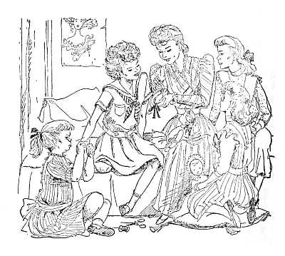 "Well, you see," said Mr. Black, who, as the girls had quickly discovered, was once more their own delightfully jolly friend, "once upon a time, a long time ago, there was a black-eyed girl named Sarah, and a two-years-younger boy, who looked a good[226] deal like her, named Peter, and they were brother and sister. They were all the brothers and sisters that each had, for their parents died when this boy and girl were very young. Peter and Sarah used to dream a beautiful dream of living together always, and of going down hand-in-hand to a peaceful, plentiful old age. You see, they had no other relative but one very cross grandmother, who scolded them both even oftener than they deserved—which was probably quite often enough. So I suspect that those abused, black-eyed, half-starved children loved each other more than most brothers and sisters do."